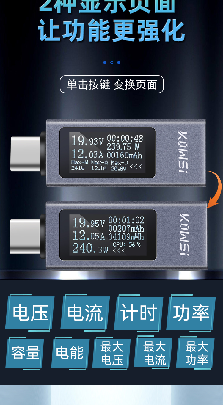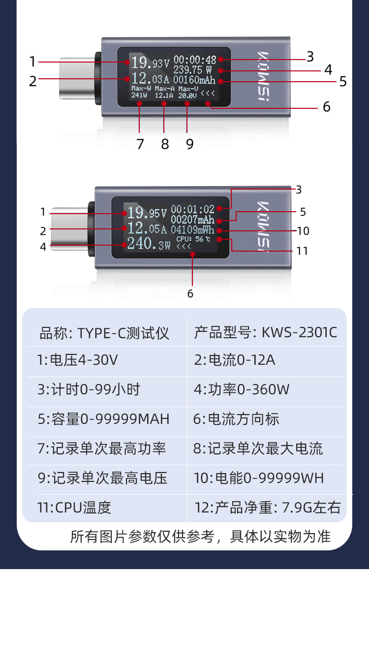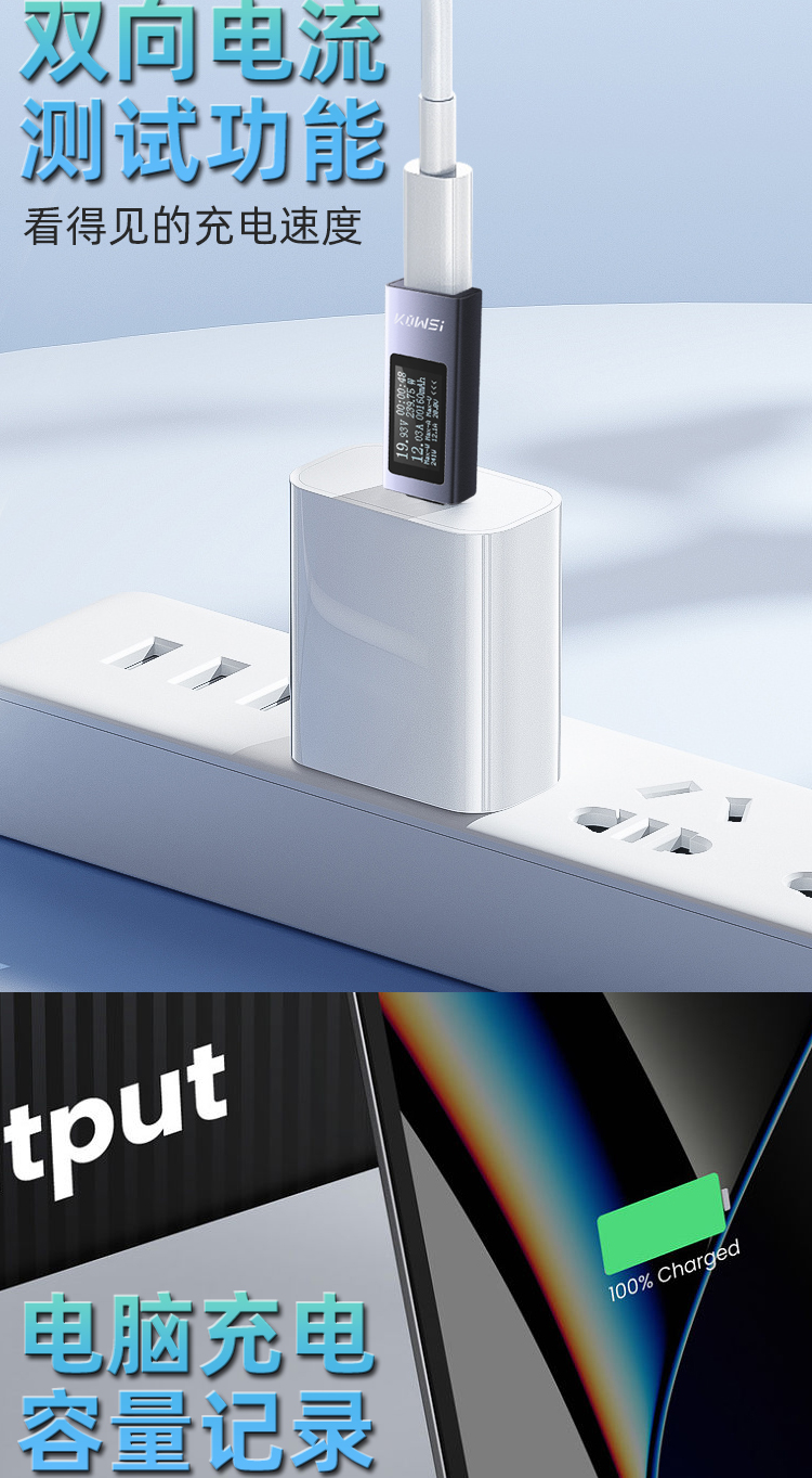 Type-c мобильный телефон детектор зарядки поддерживает 12A большой ток PD постоянного тока измеритель мощности KWS-2301C