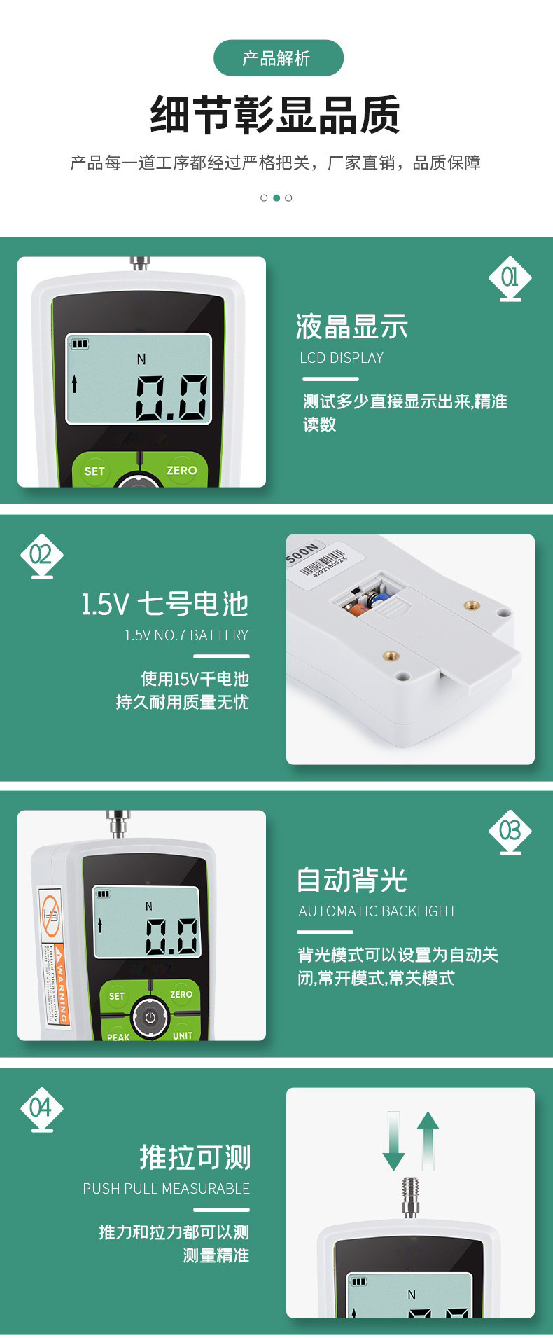 Цифровой толчок-толчок-толчок-тяга-толчок-манометр силомера пружинной испытательной машины Малое значение силы