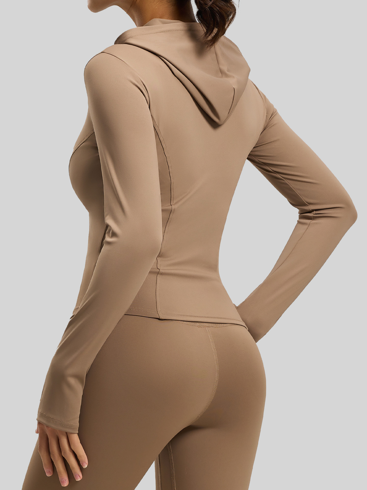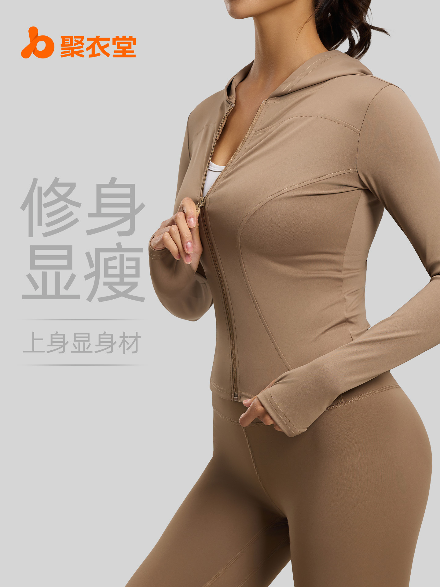 Спортивная куртка Juyitang с капюшоном, облегающая, для йоги, эластичная, ветрозащитная, для бега и велоспорта