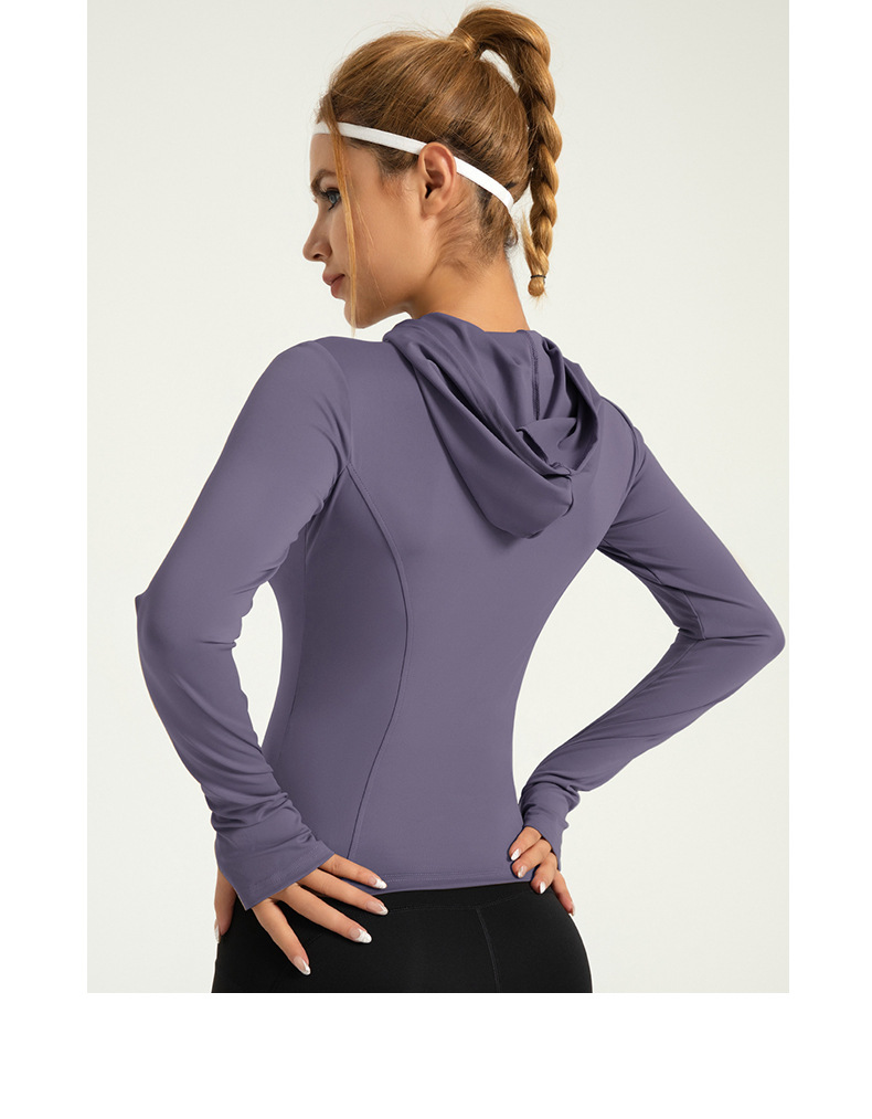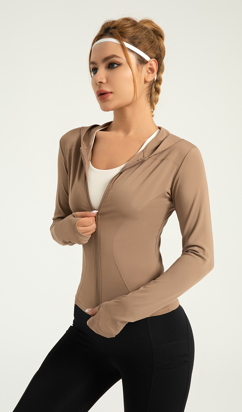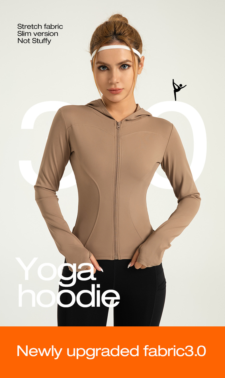 Трансграничная зона с капюшоном Тонкая куртка йоги эластичная, ветрозащитная езда, чистая ветрозащитная спортивная куртка