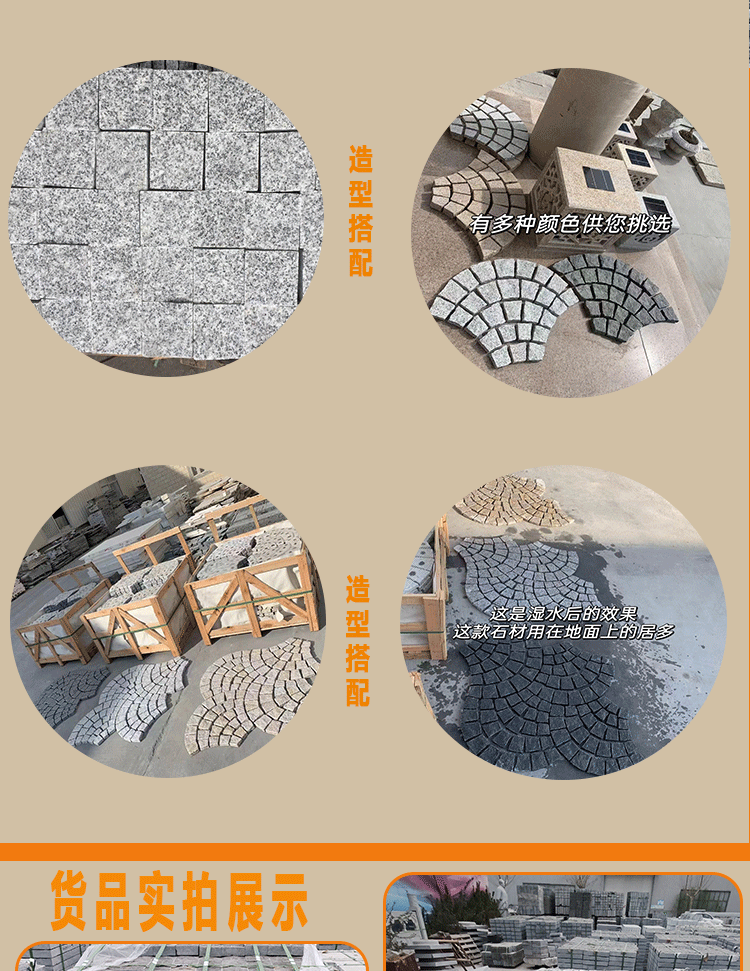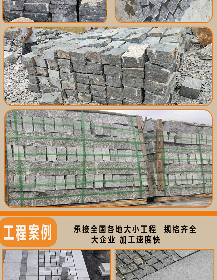 石材五莲花花岗岩马蹄石 石材现货浅红色马蹄石工程护坡石 弹石五莲红方块石马蹄石公园小路弹石 厂家加工园林庭院路面小料石