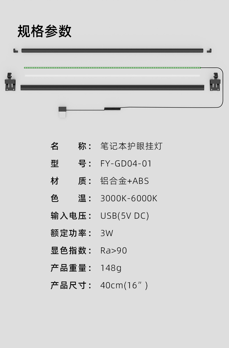 Ноутбук защиты глаз подвесной светильник USB type-c питания (черная версия); Ноутбук защиты глаз подвесной светильник USB type-c питания (серебряная версия)