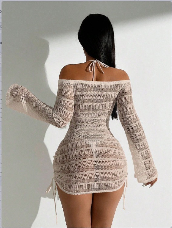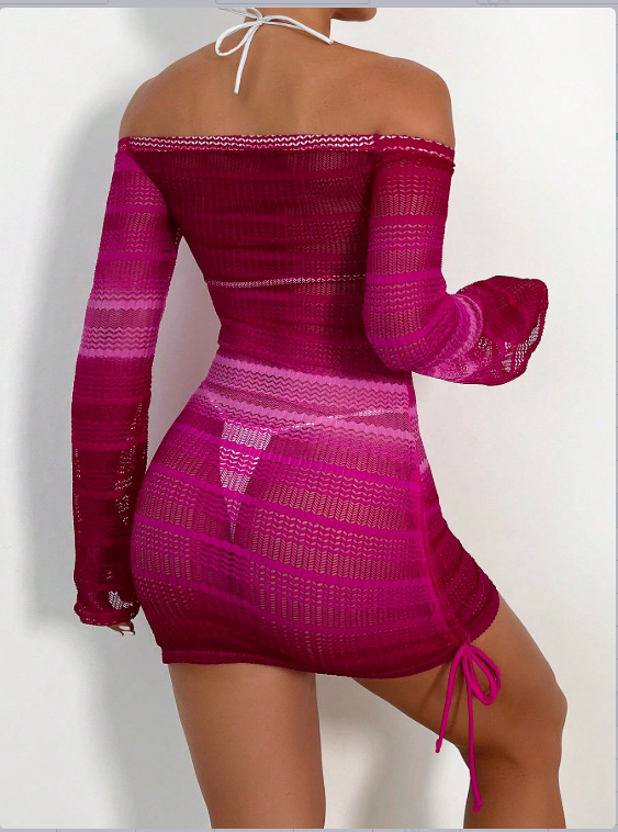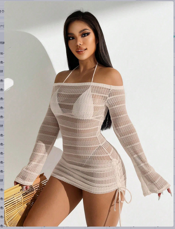 Европейский и американский купальник 2024 новый сетчатый пряжа с длинными рукавами солнцезащитный купальник женский пляж внешняя торговля сексуальная бикини одиночная блузка