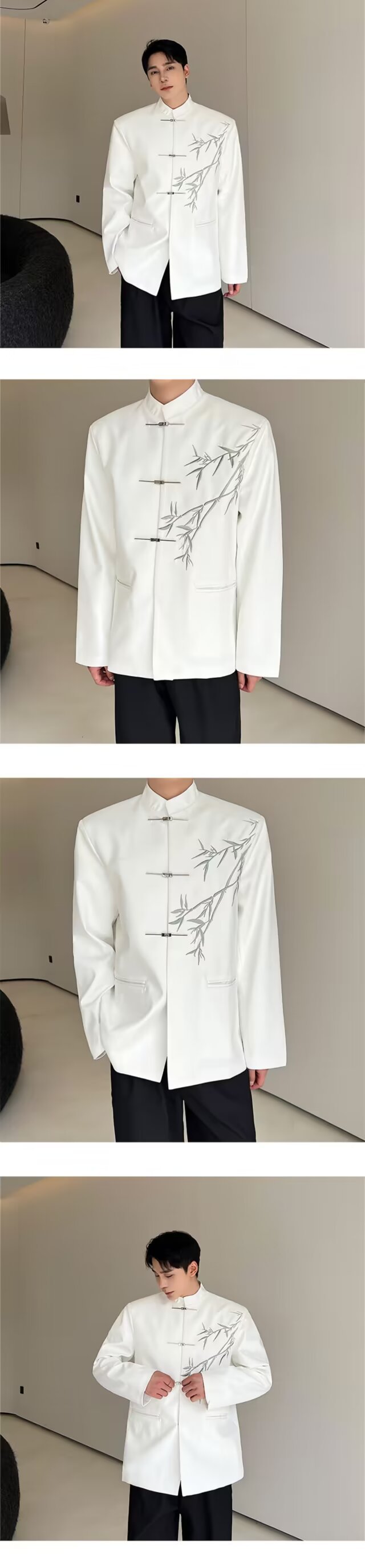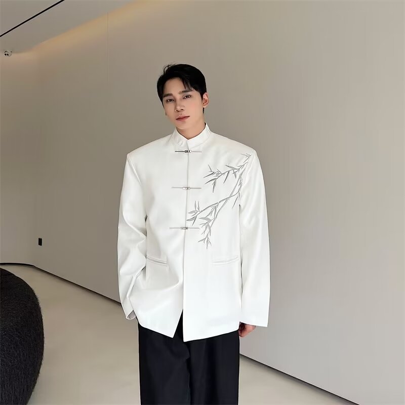Костюм Тан в китайском стиле, бамбуковая рубашка с вышивкой, мужская весенняя новая повседневная рубашка, мужская куртка 2024, свободного типа