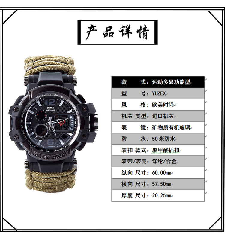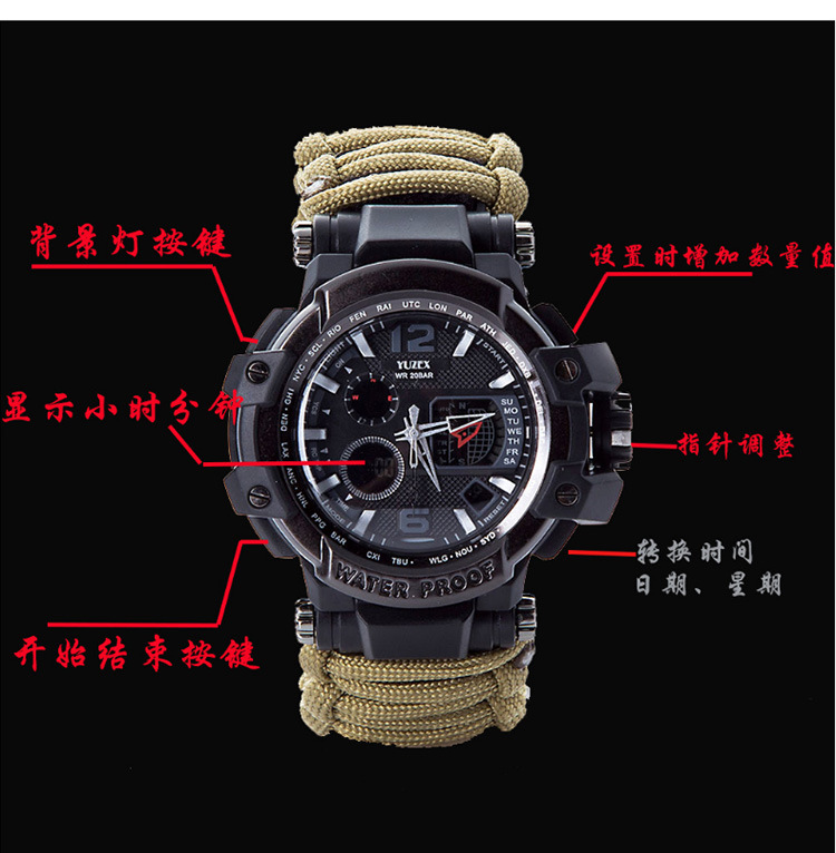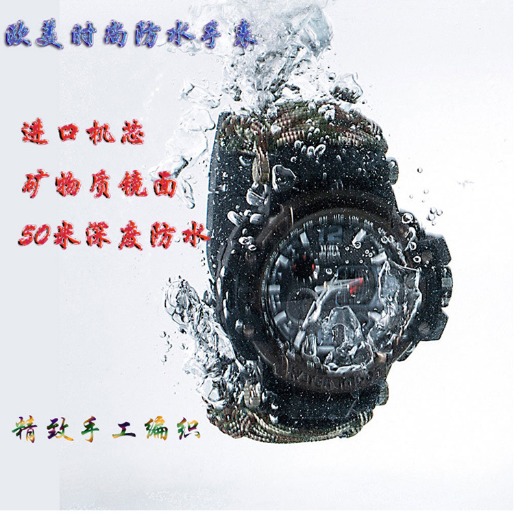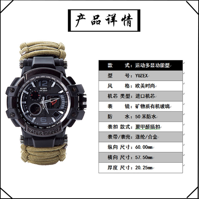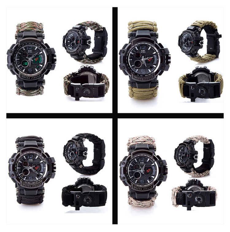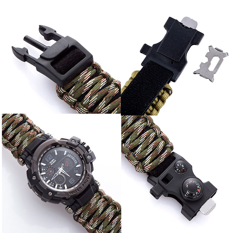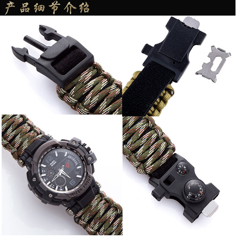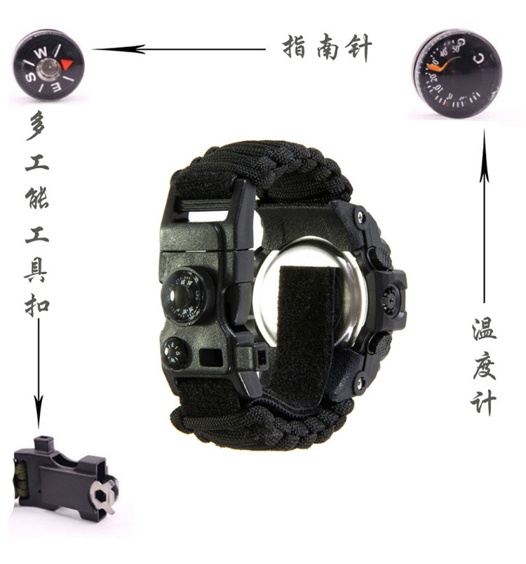 Полное выживание Многофункциональная глубокая водонепроницаемая часы большой циферблат для скалолазания на зонтик веревку часы ручной вязки спасательные часы