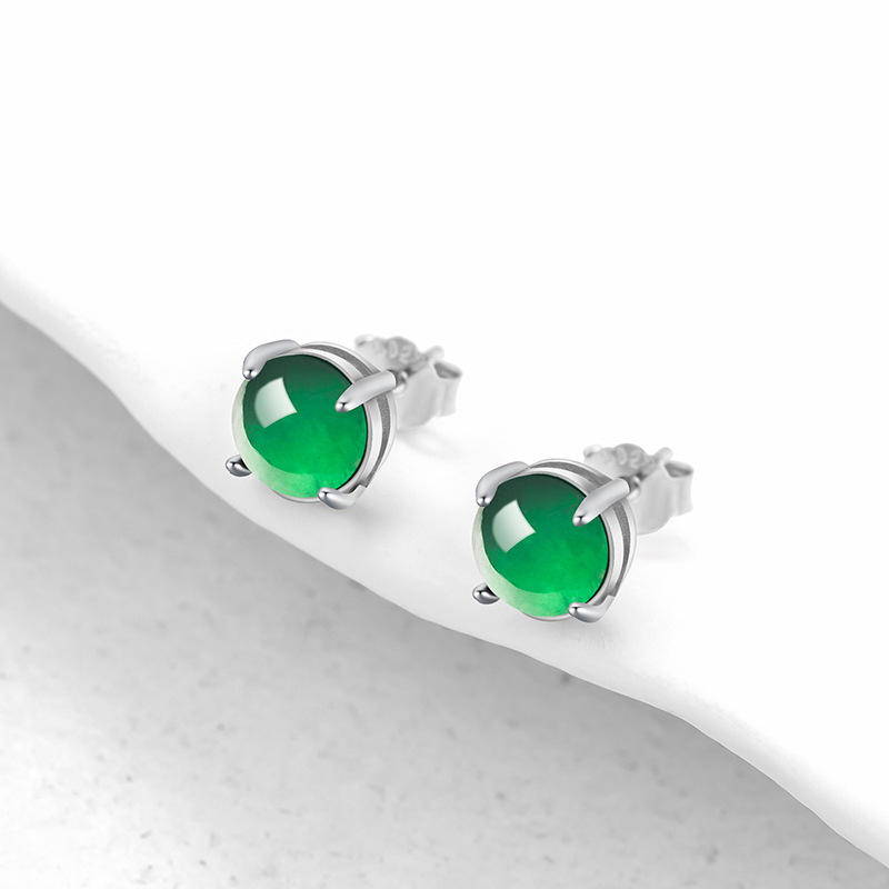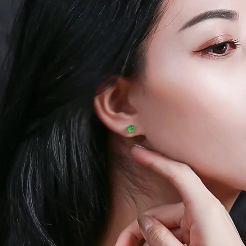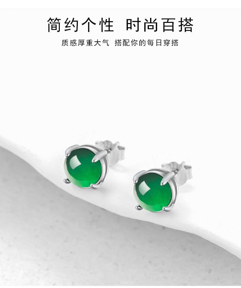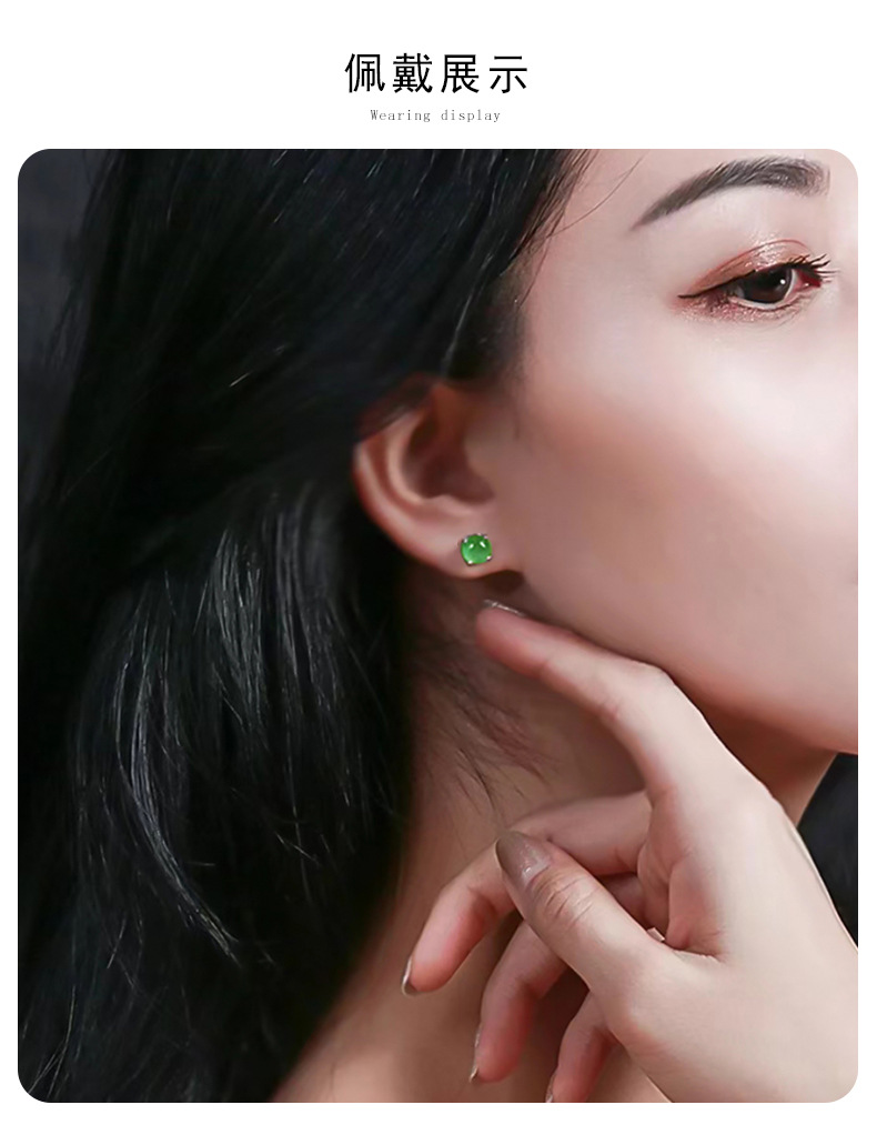 Натуральный товар Изумрудная яичная лапша Янг зеленый ушной гвоздь ледяной нефритовый камень модный S925 Серебряная инкрустация женские серьги оптом