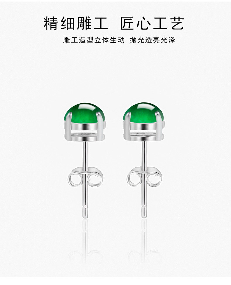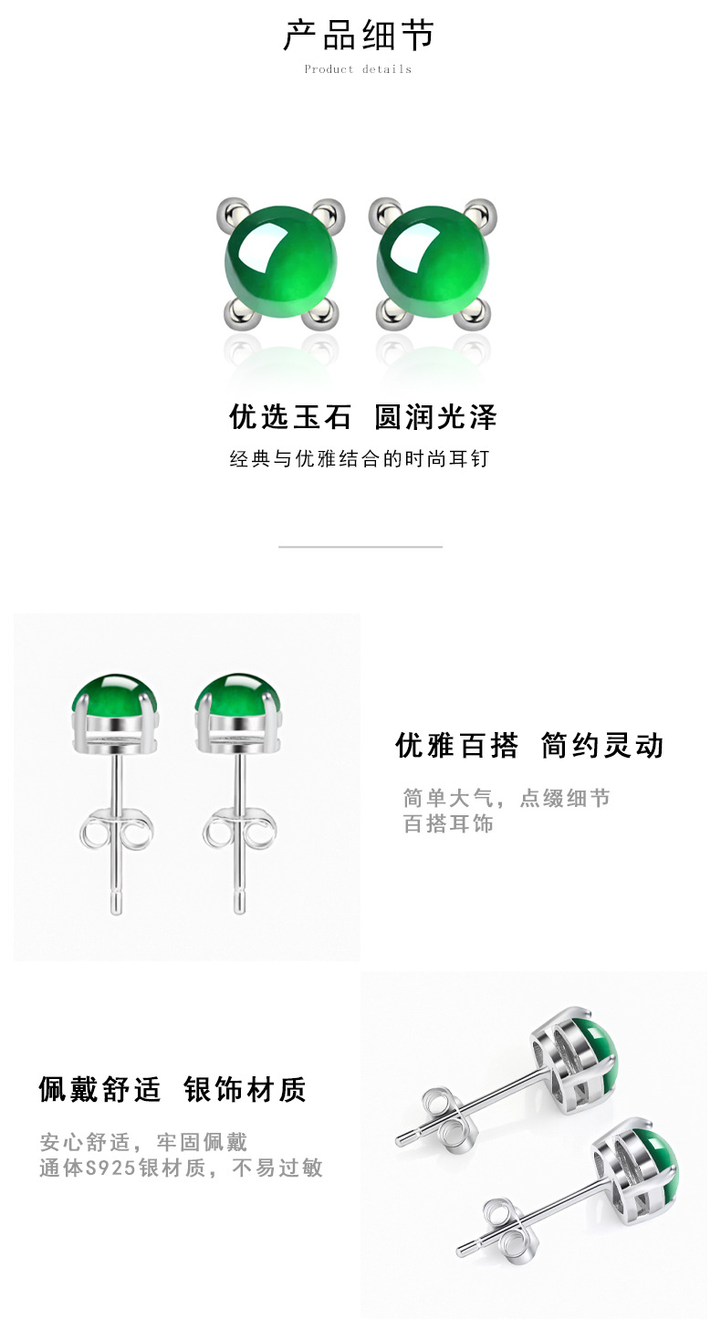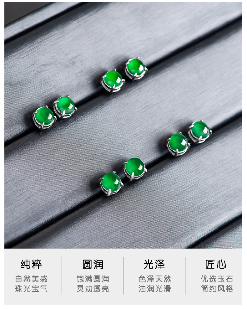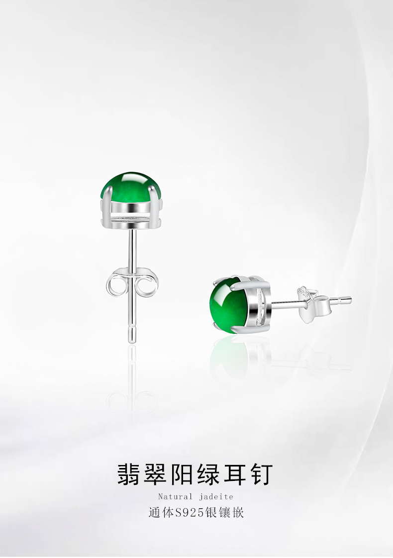 Натуральный товар Изумрудная яичная лапша Янг зеленый ушной гвоздь ледяной нефритовый камень модный S925 Серебряная инкрустация женские серьги оптом