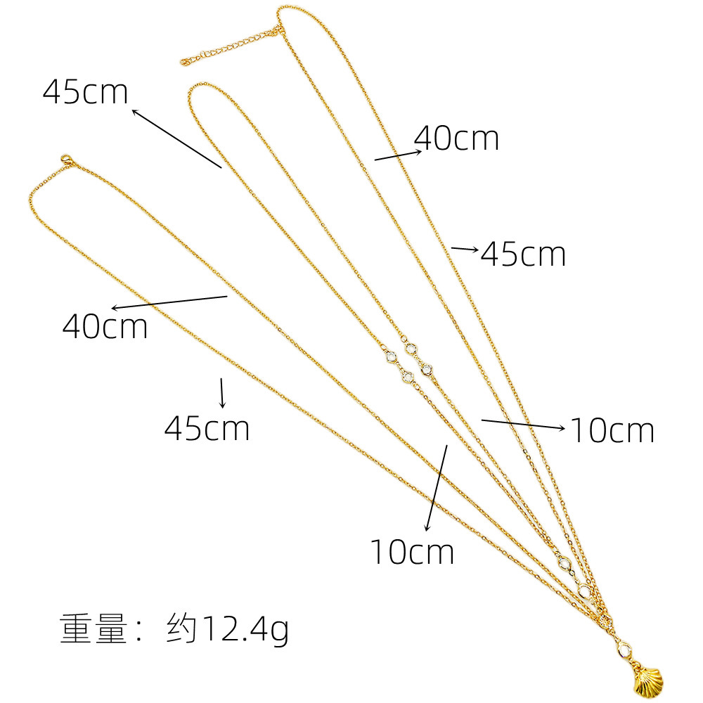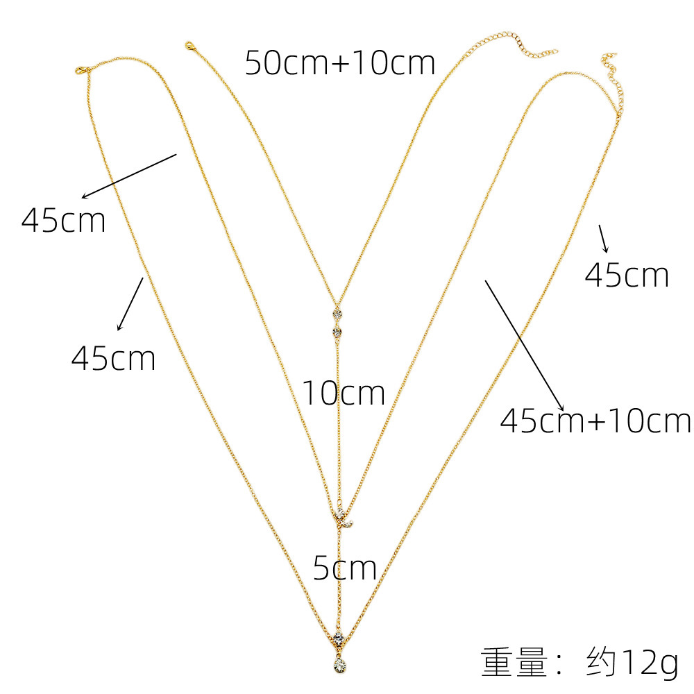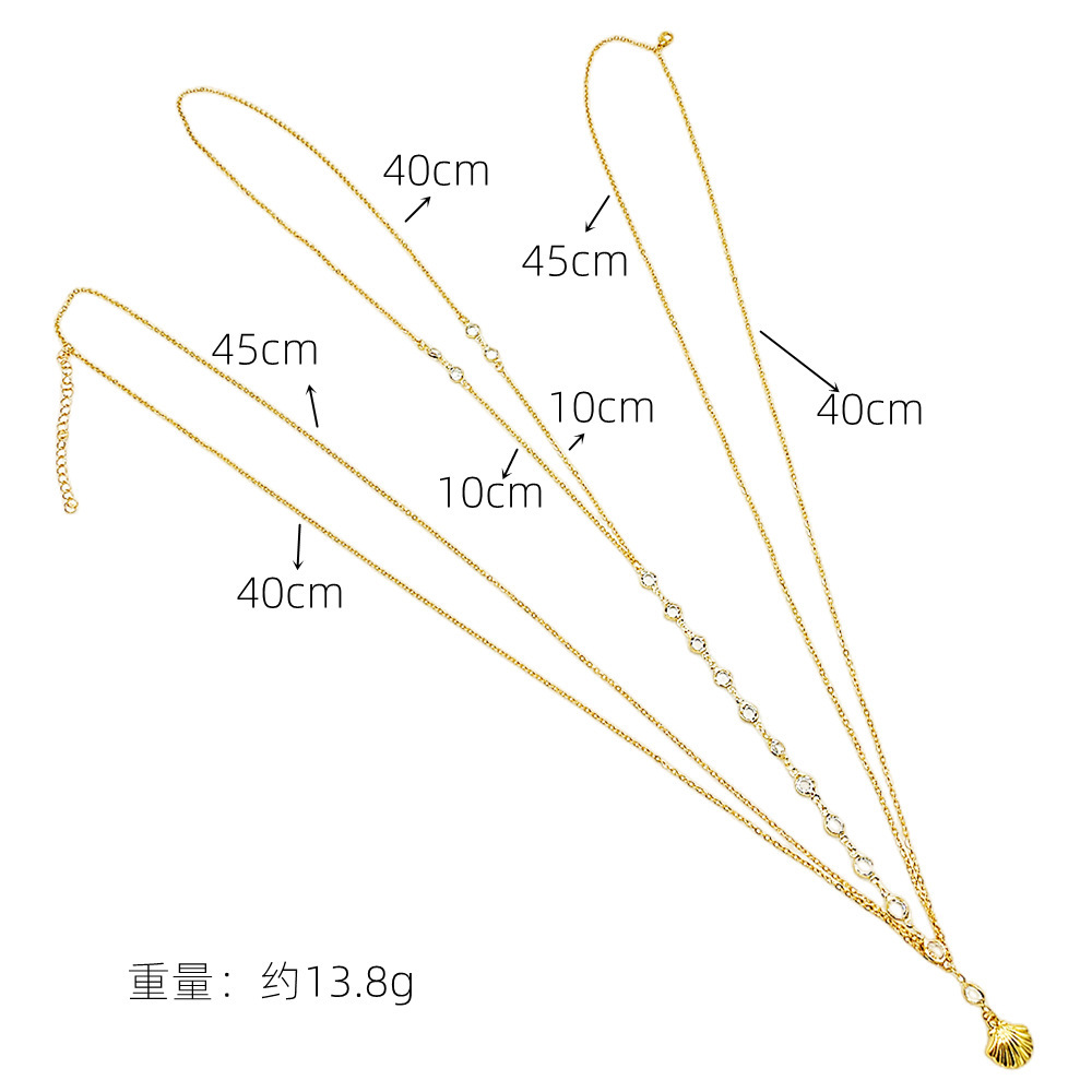 Европейская и американская трансграничная ювелирная мода изысканная цепочка тела двухслойный минималистский сплав веер подвеска прозрачная двухсторонная цепочка сверла