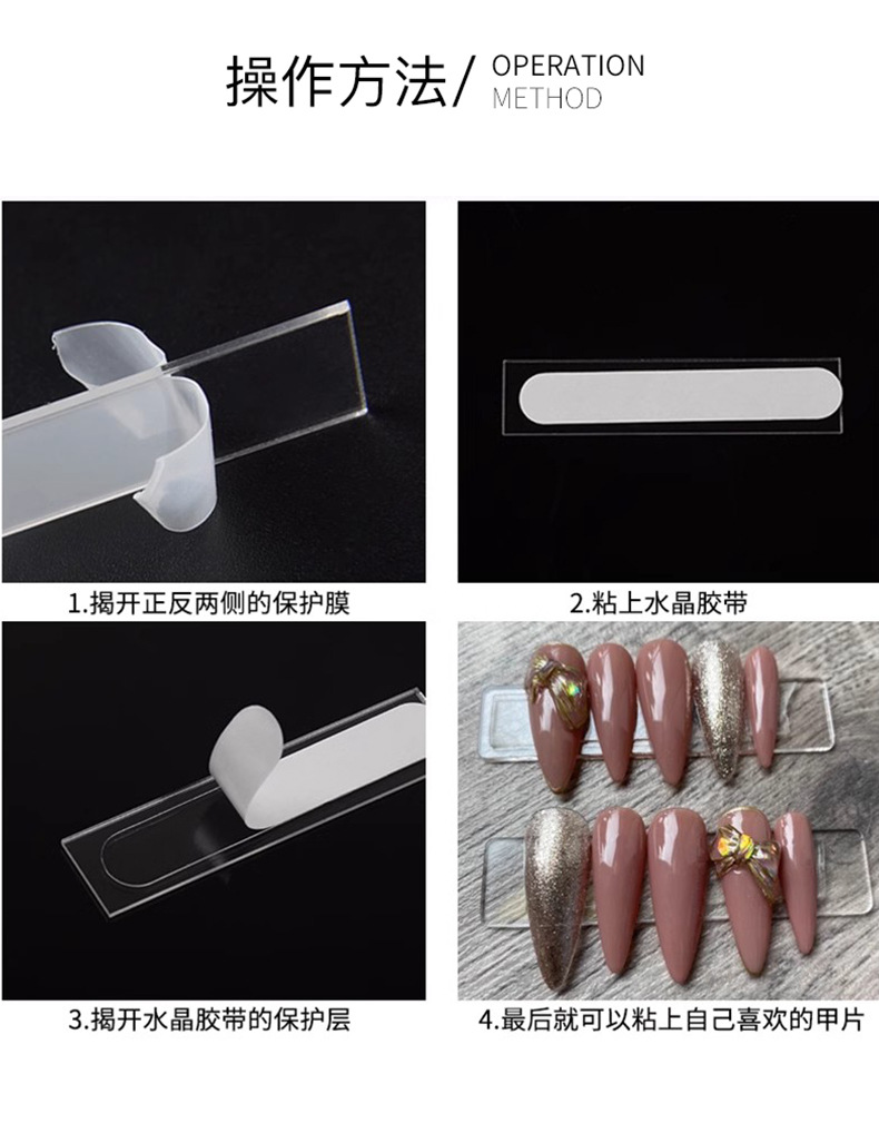 Носите пластиковый кристалл прозрачный двухсторонний клейкий наклейка для ногтей