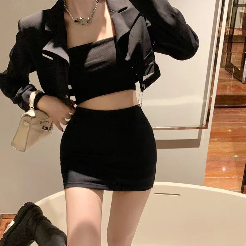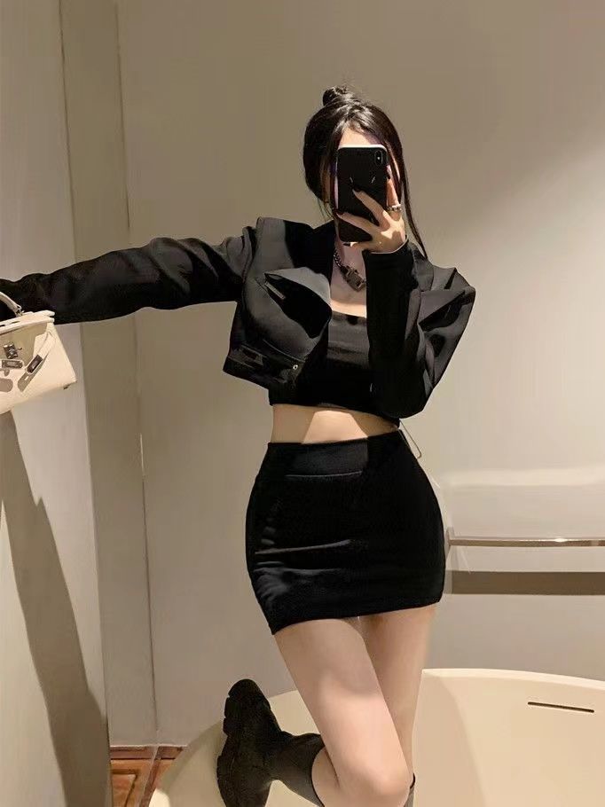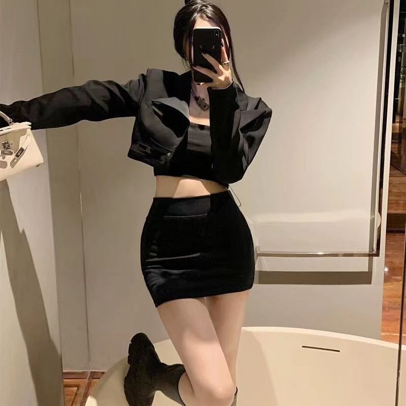 2024 Spice Girl Черная юбка с половинкой женская летняя высокая талия эластичная обтягучая юбка Половина юбка супер огонь мини-юбка бедра юбка
