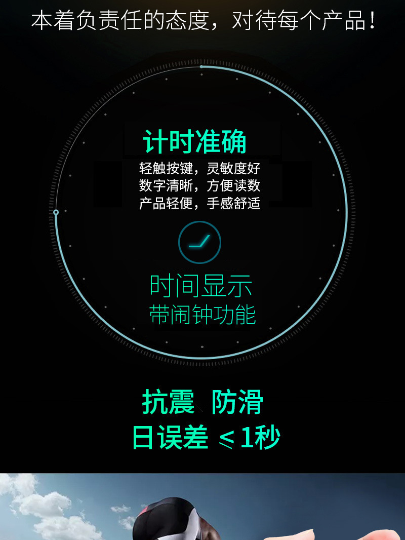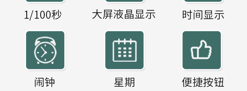 功能:单道记忆、1/100秒计时、星期时间显示、带闹钟