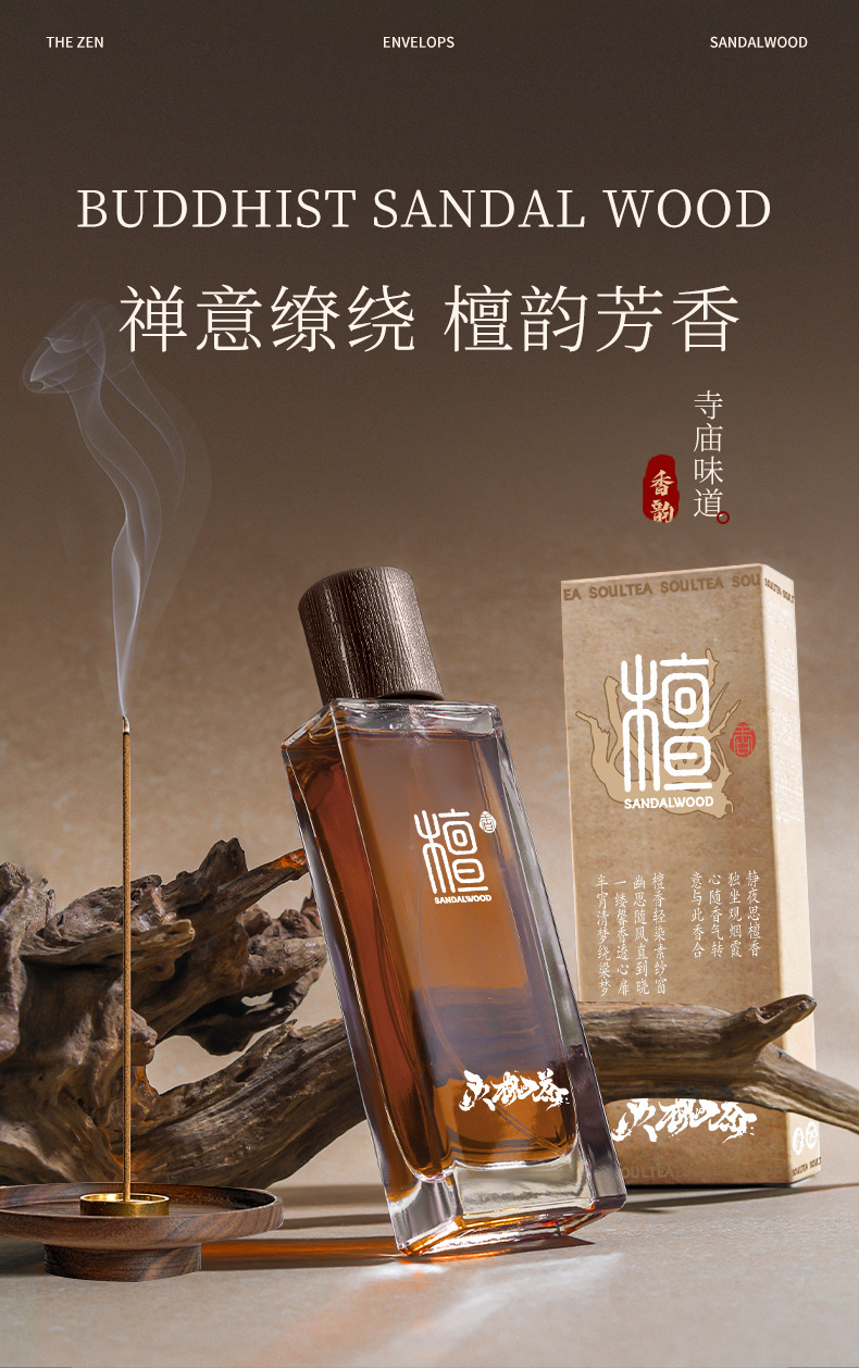 Тайские духи из сандалового дерева в национальном стиле TK, аромат храма сандалового дерева, легкий аромат благовоний сандалового дерева, высококачественный стойкий древесный аромат.