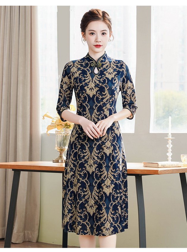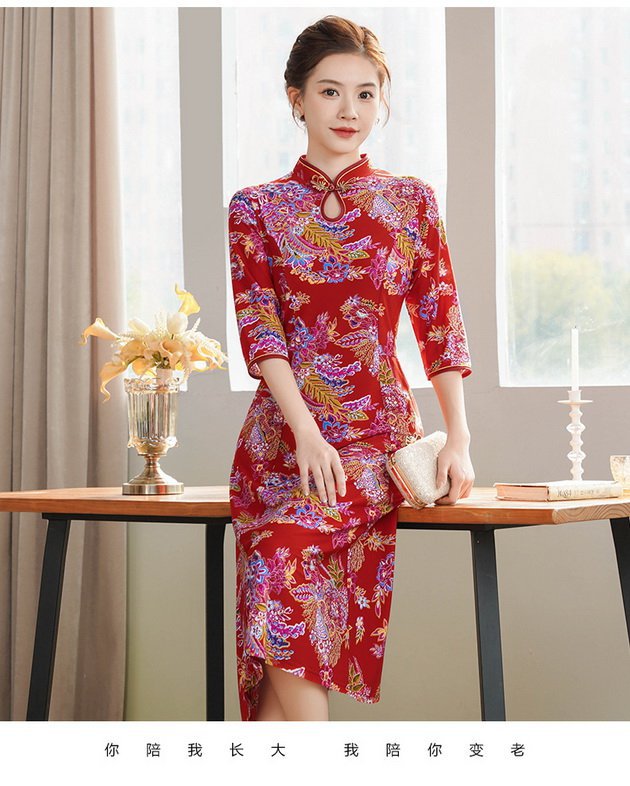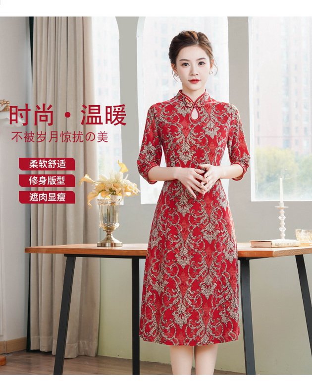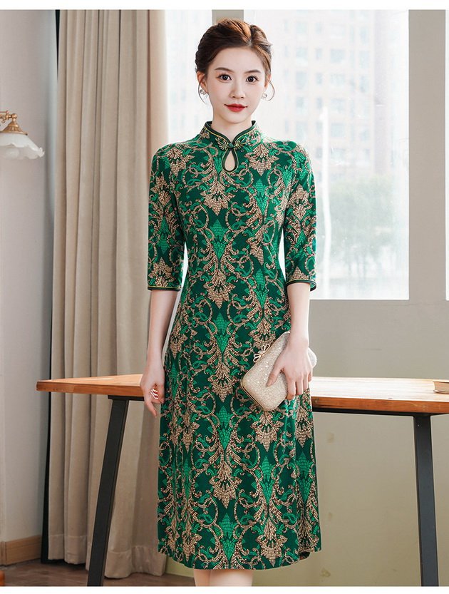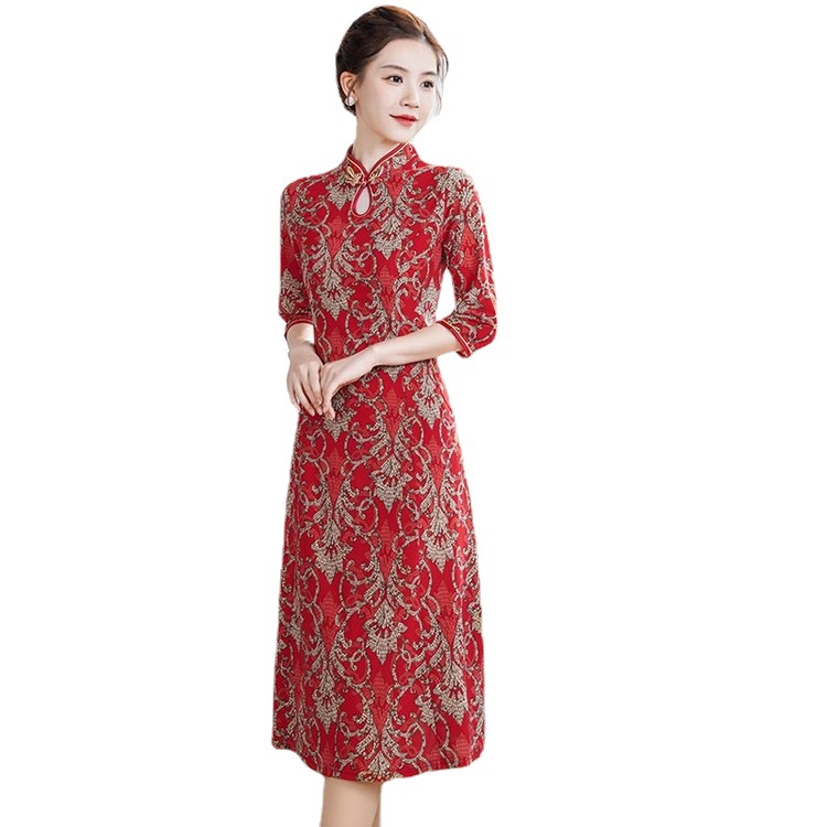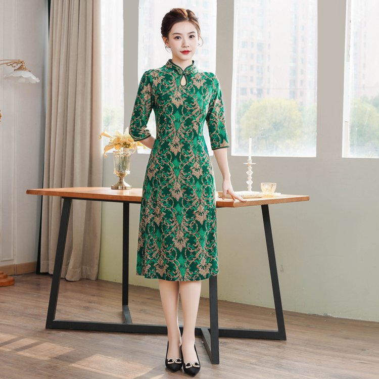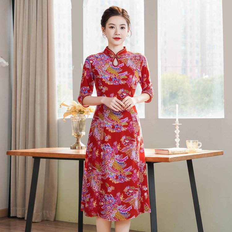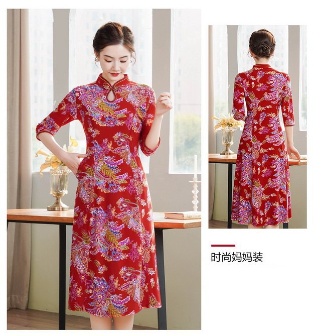 Новый китайский ретро-принт улучшенный чонсам 2024 новый костюм мамы весной и летом минус старое платье