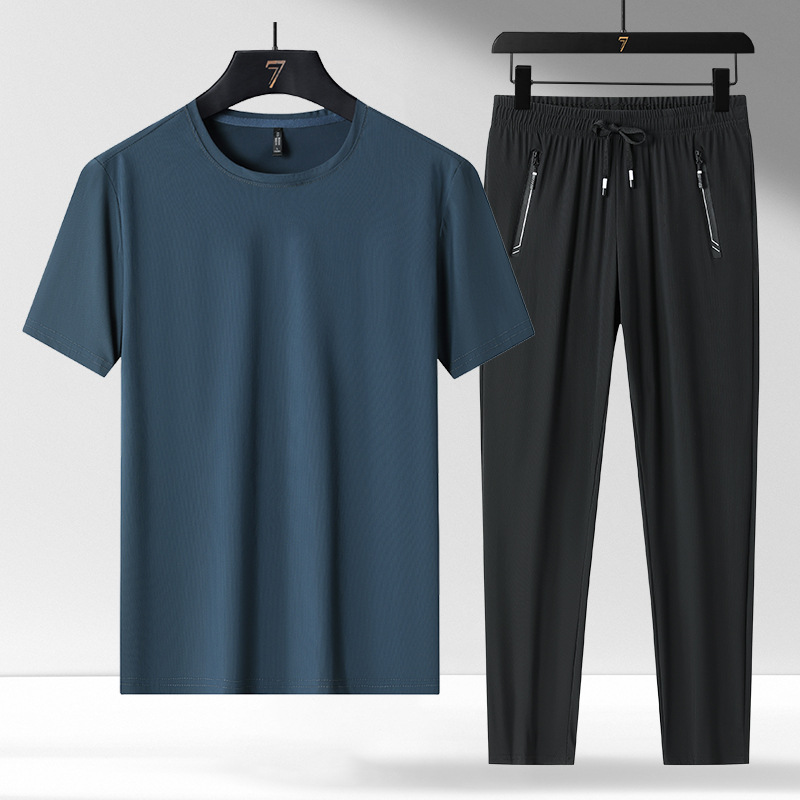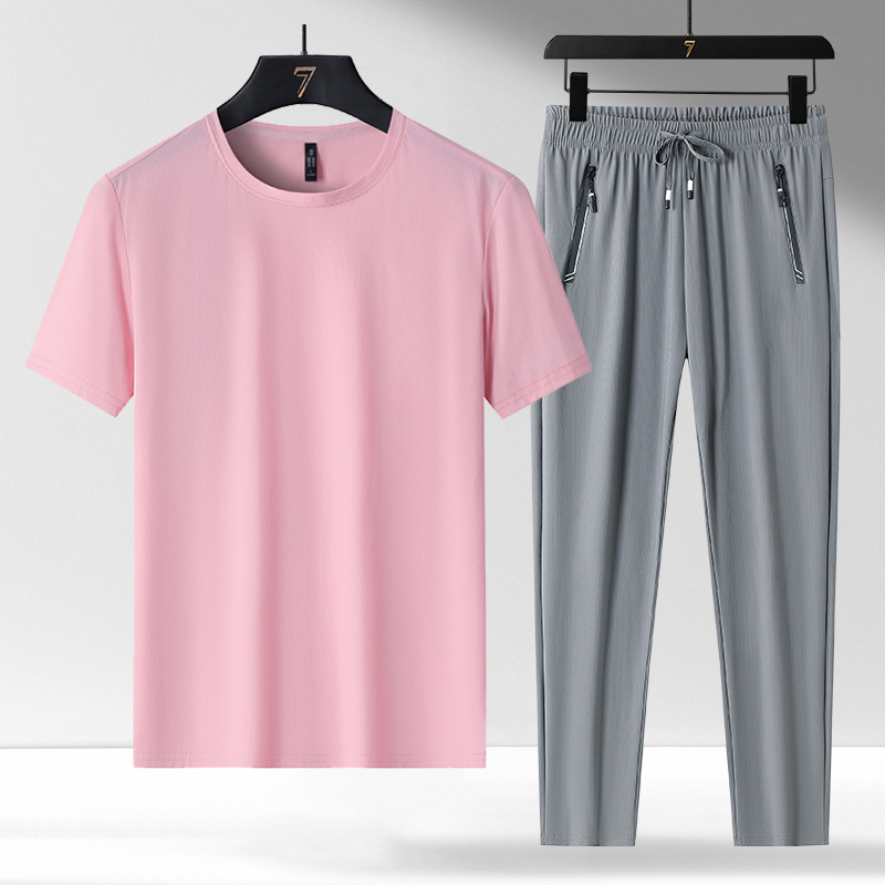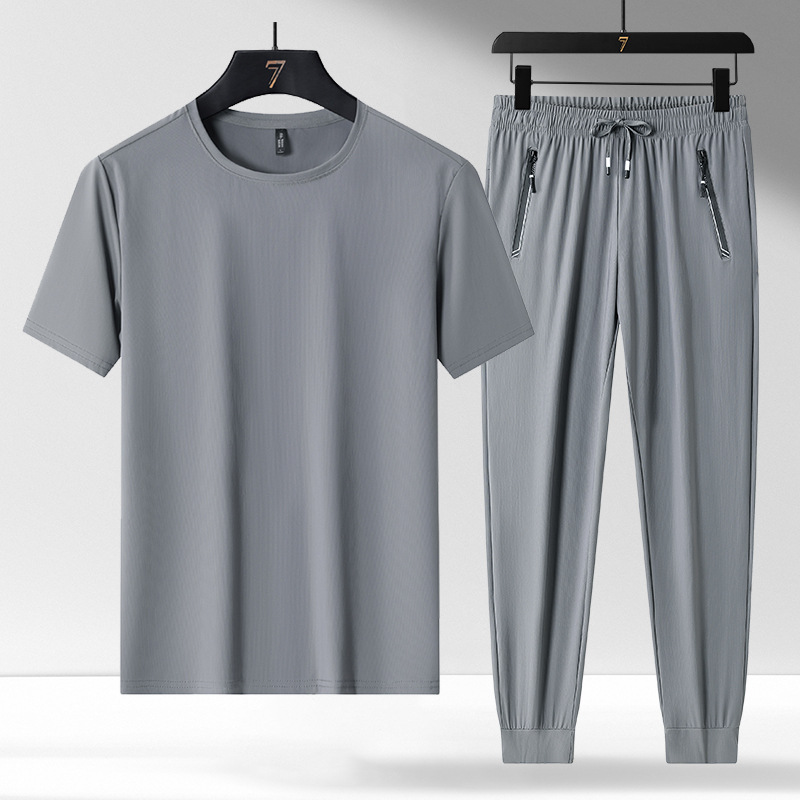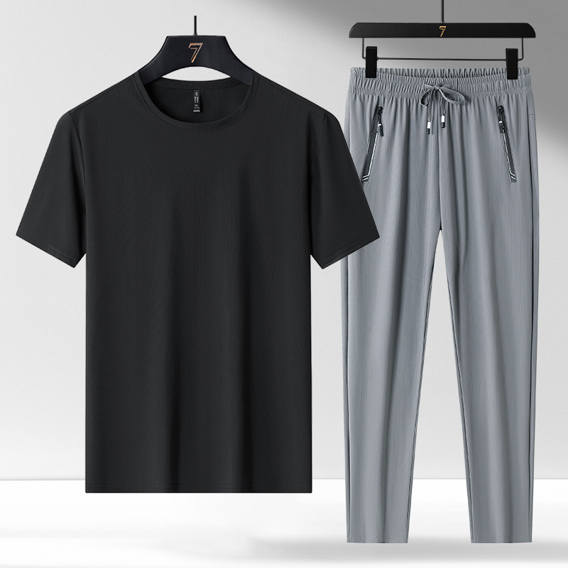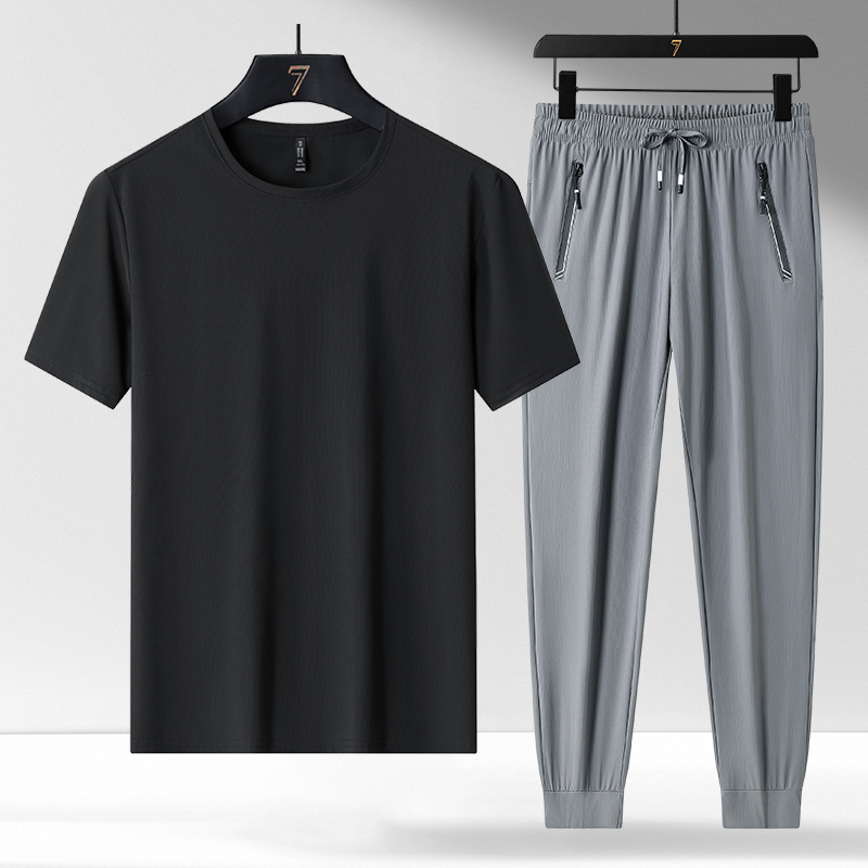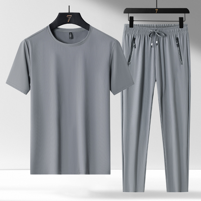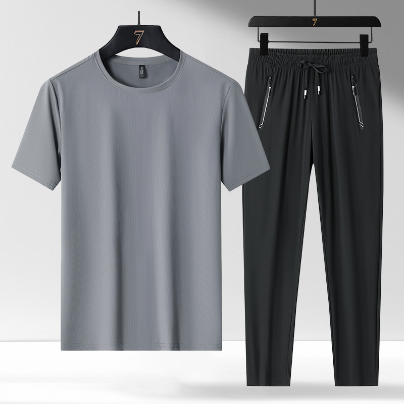 Спортивный костюм мужской летний папа тонкий ледяной шелк, дышащая короткая футболка брюки повседневная спортивная одежда