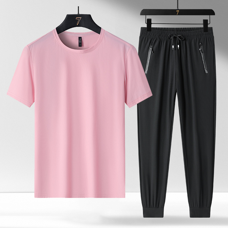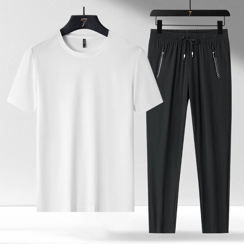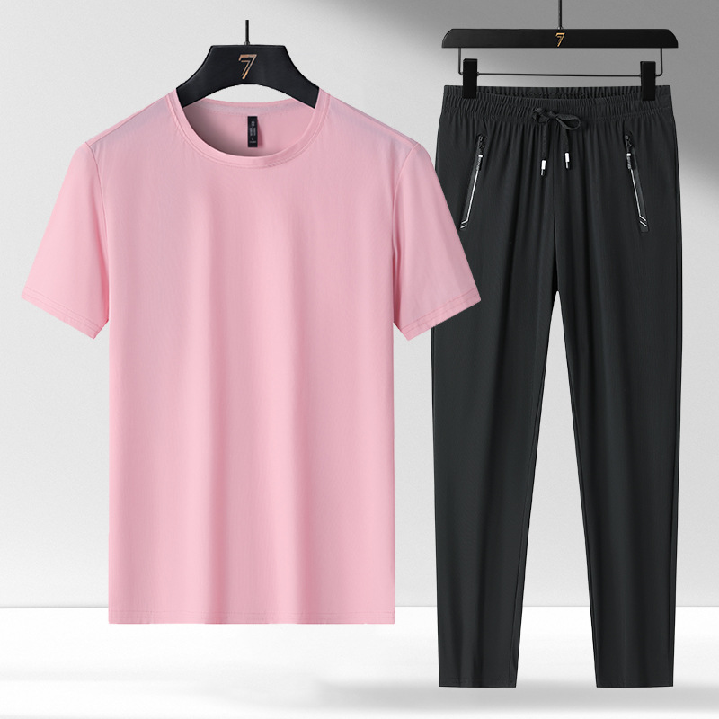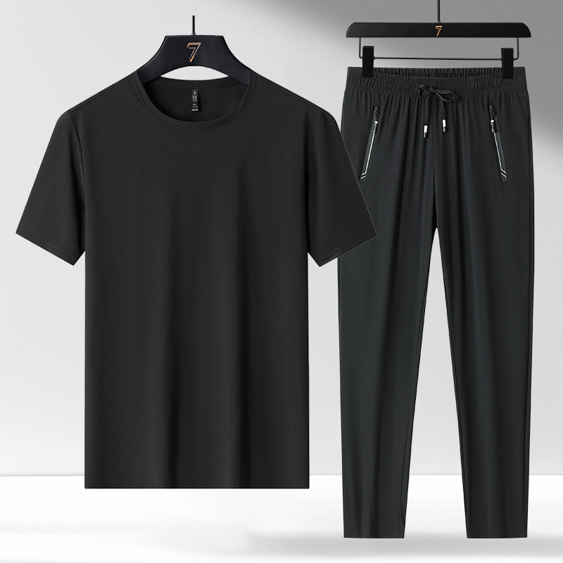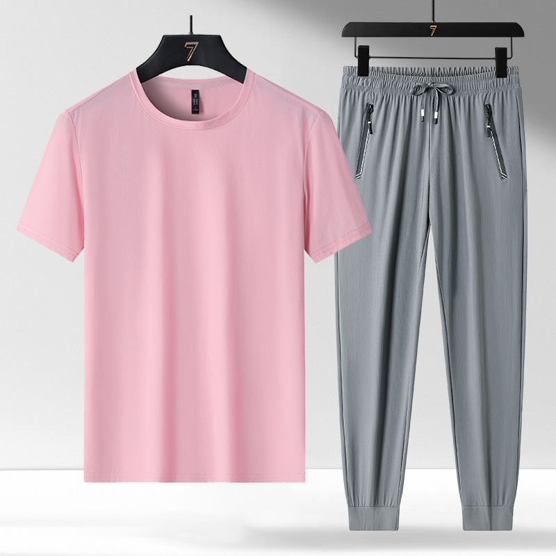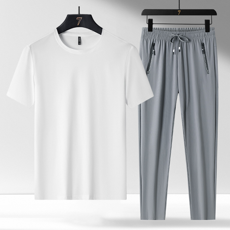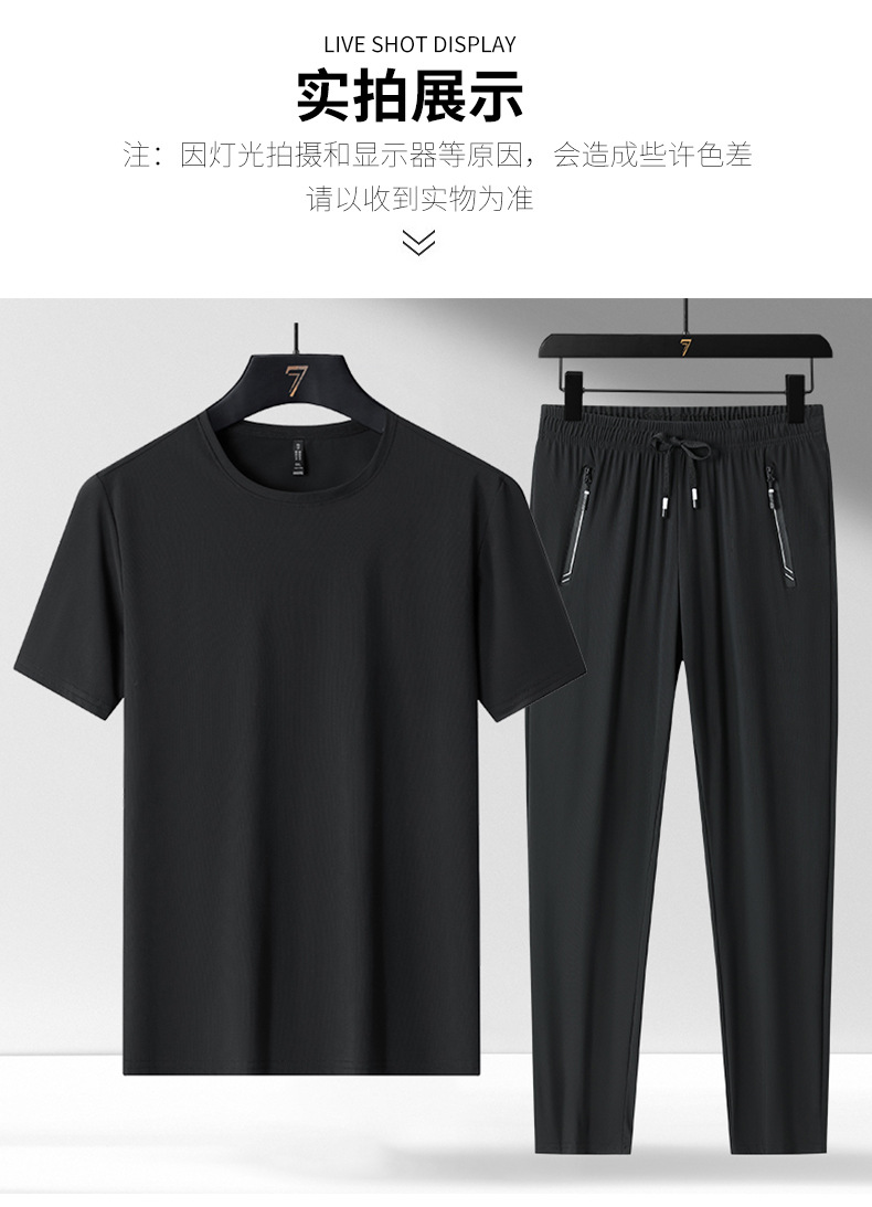 Спортивный костюм мужской летний папа тонкий ледяной шелк, дышащая короткая футболка брюки повседневная спортивная одежда