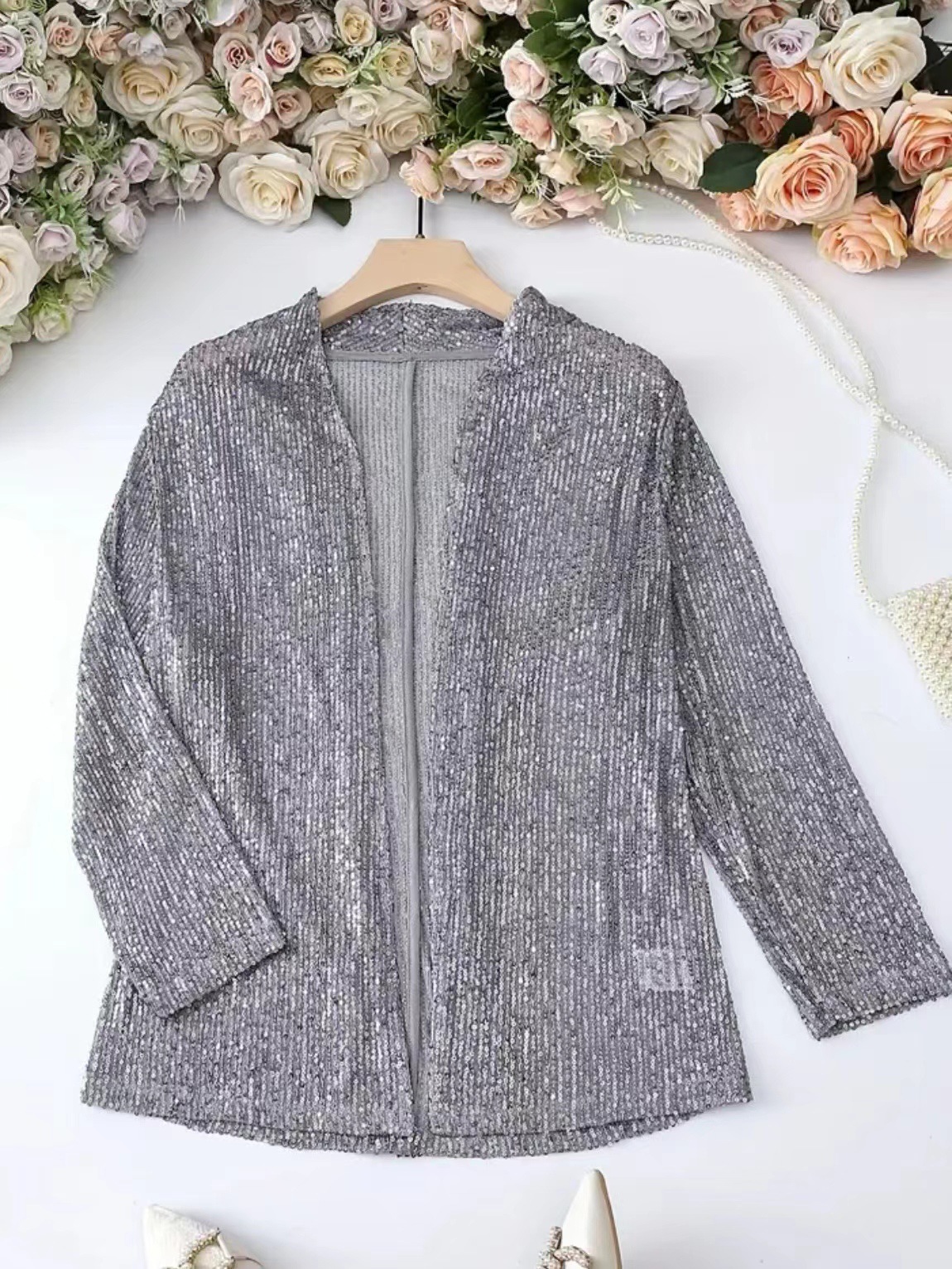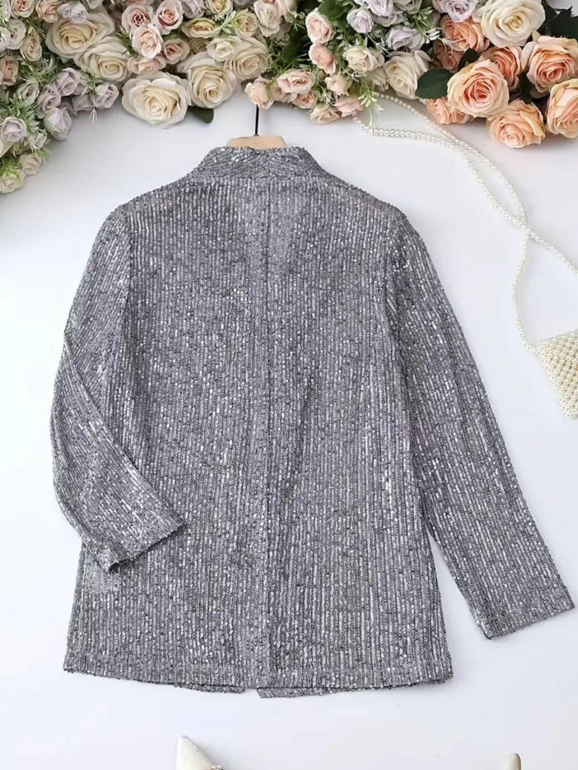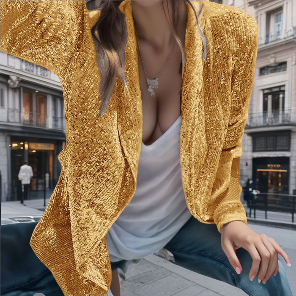 Весной и осенью Европа и США трансграничная внешняя торговля новая взрывная элегантная сплошная стройная повседневная блестка маленький пиджак женский