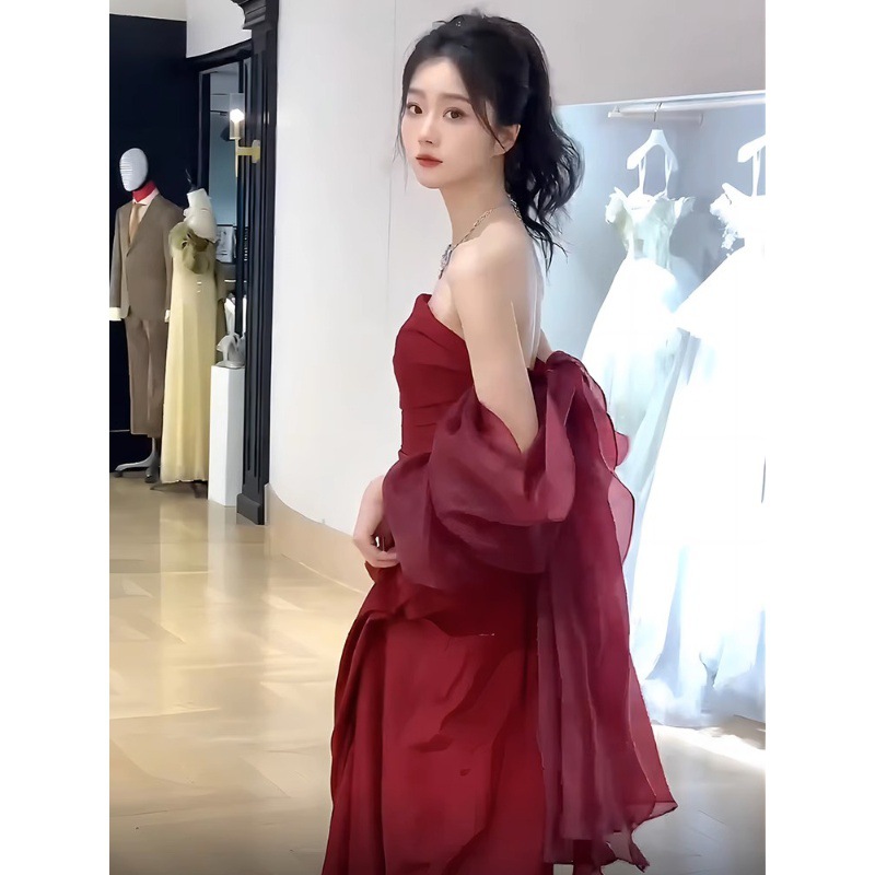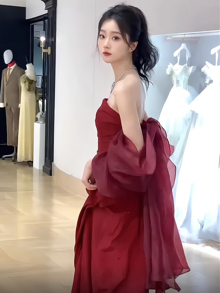 Новая модель 2026 года: красное свадебное платье для женщин, элитное роскошное платье без бретелек для помолвки и свадебных церемоний.