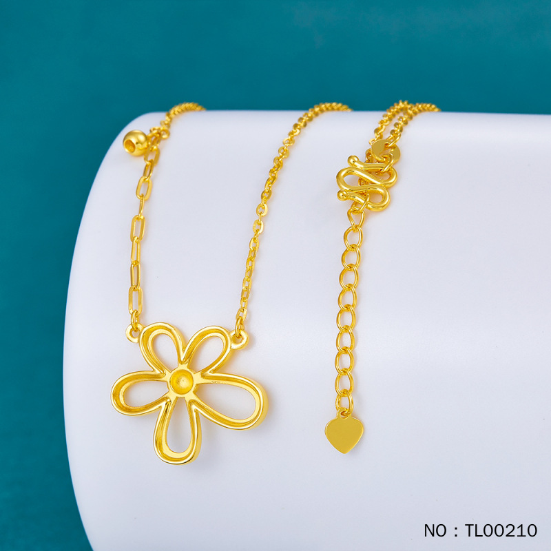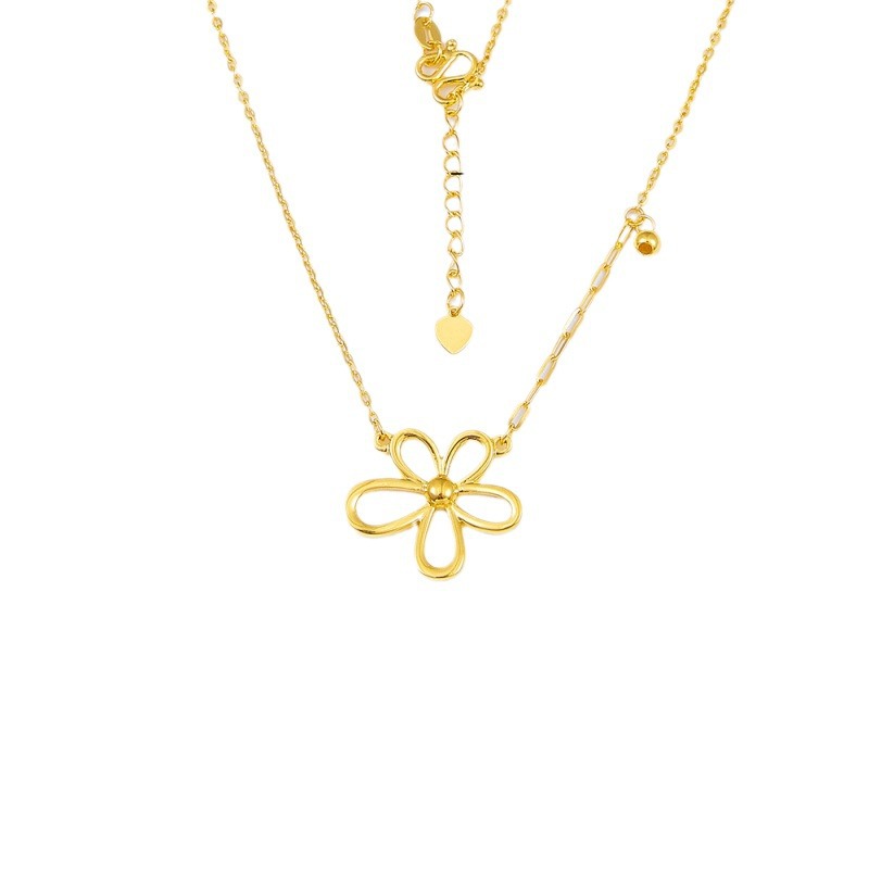 Чистое золото 9999 [Премиум] Регулируемая цепочка с полым пятилепестковым цветком Гарантия настоящего золота.