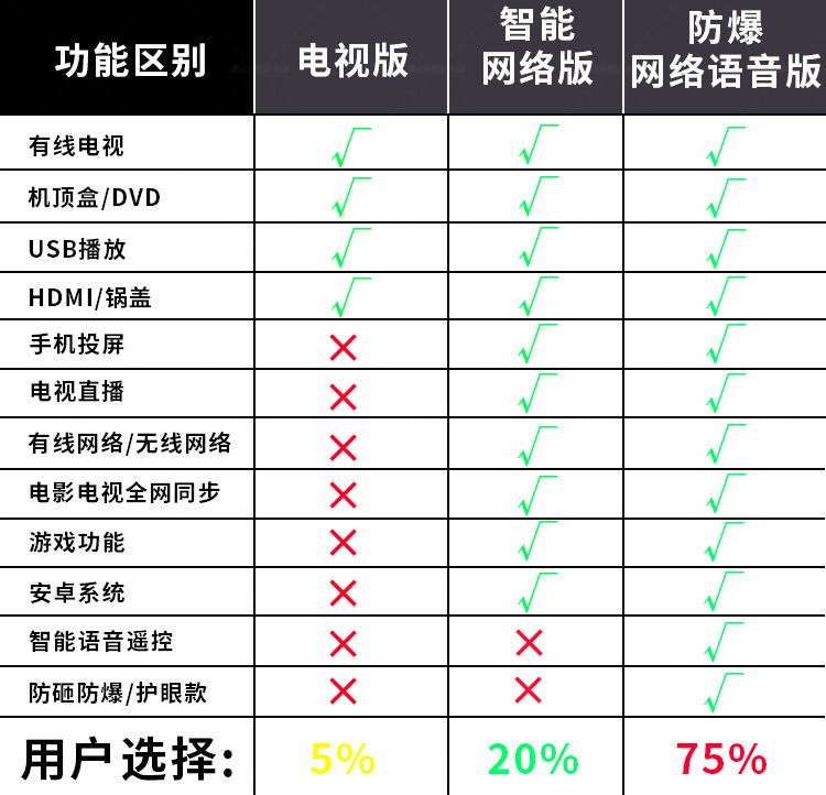 Сетевое телевидение; Обычный телевизор; конференц-машина; Смарт ТВ; изогнутый телевизор