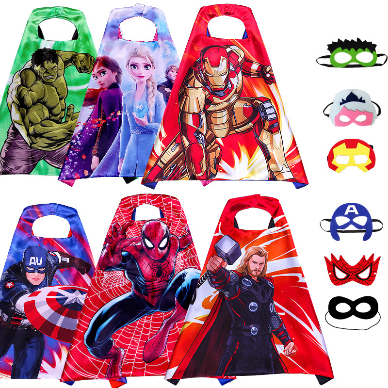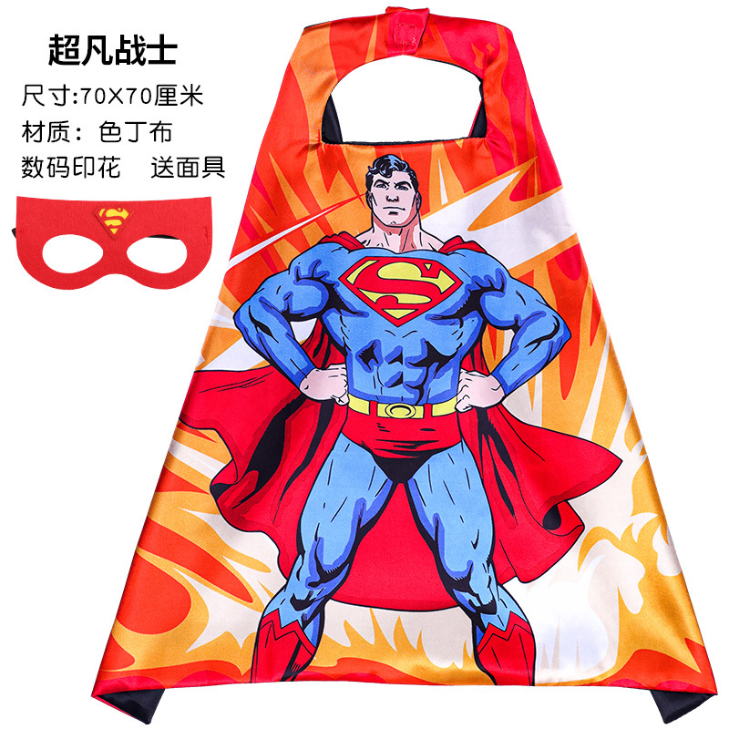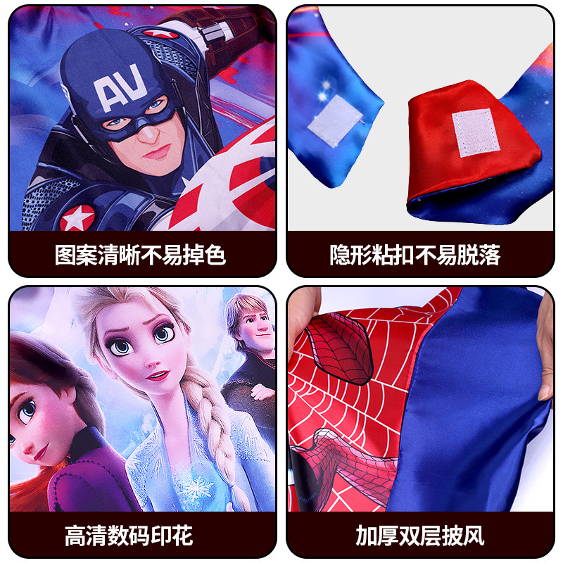 万圣节儿童超级英雄印花动漫披风蜘蛛侠奥特曼美国队长衣服装扮