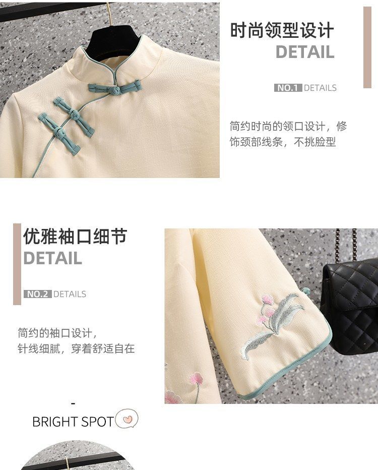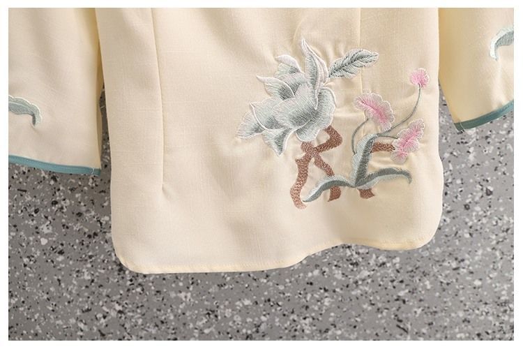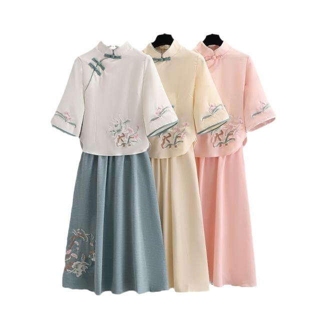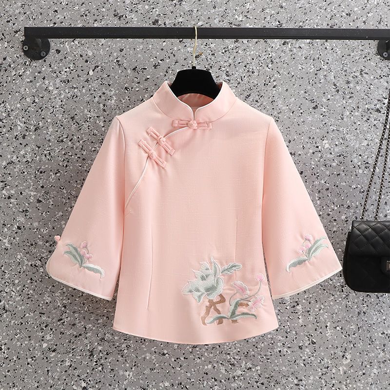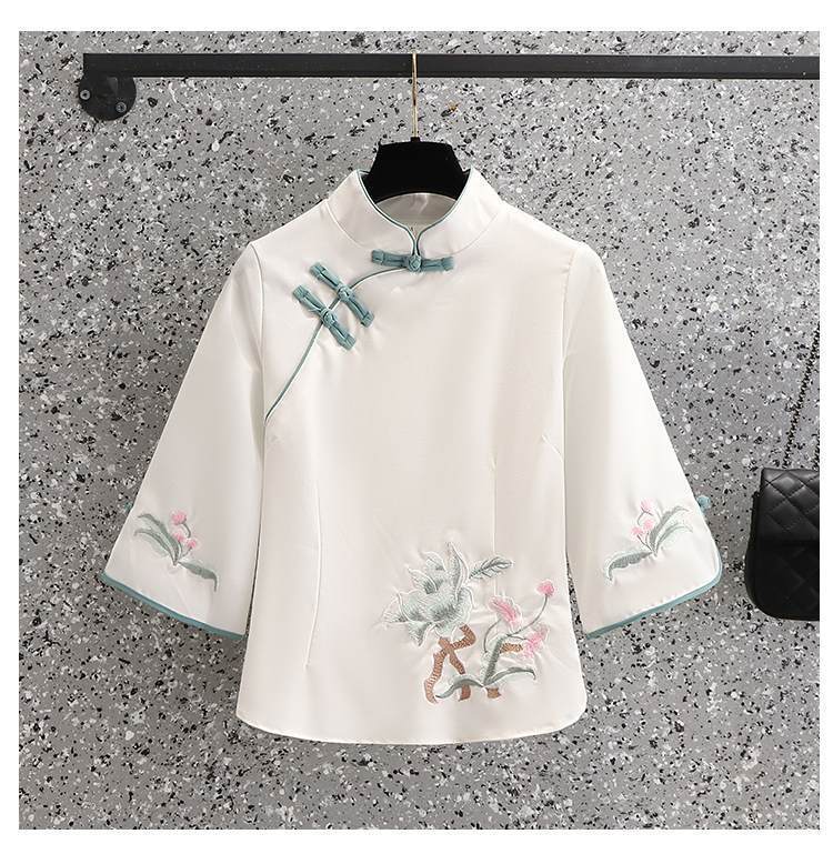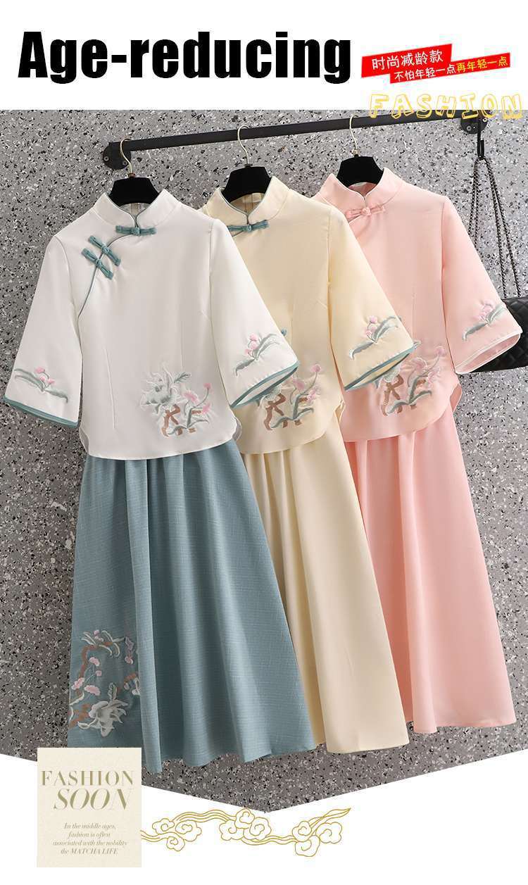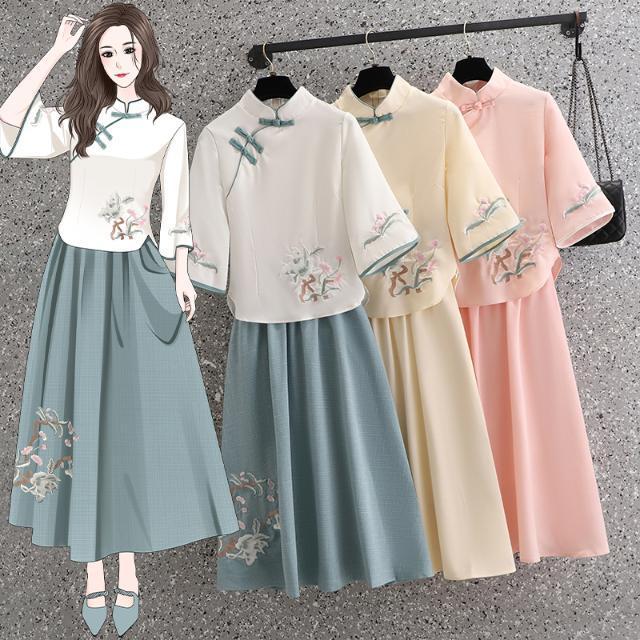 Высококачественный китайский костюм для чаепития, улучшенная версия, рукава три четверти, вышитый магнолией комплект из двух предметов, элегантный новый китайский чонсам.