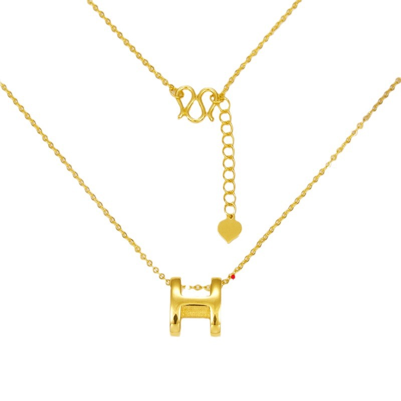 Чистое золото 9999 [Премиум] Золотая буква H Модная регулируемая цепочка Гарантия настоящего золота.
