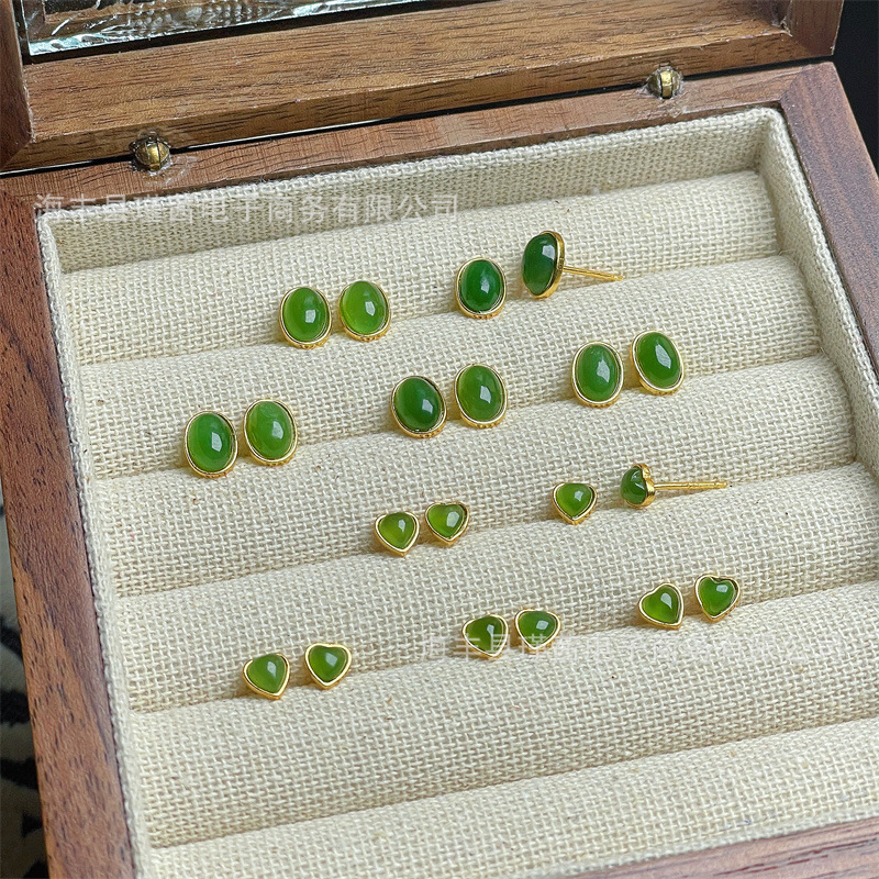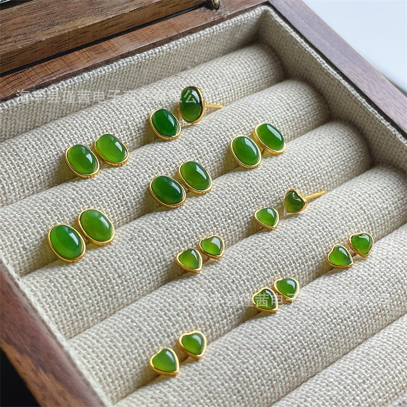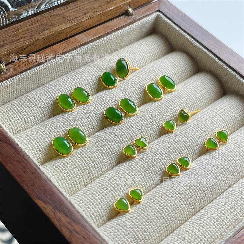 Прямая трансляция поставки Оптовая продажа все тело s925 серебро инкрустированный натуральный русский яшма и нефритовый серьги серьги ювелирные изделия