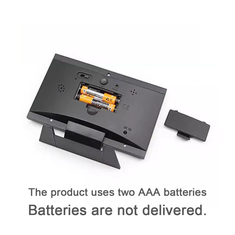 B:由于产品实时监测温度、湿度、声控、背光等多项功能,电池耗电比较快;建议使用商品配的USB转DC线插电使用体验更强;插电时无需拆下电池,就算是停电也不影响时间重置。