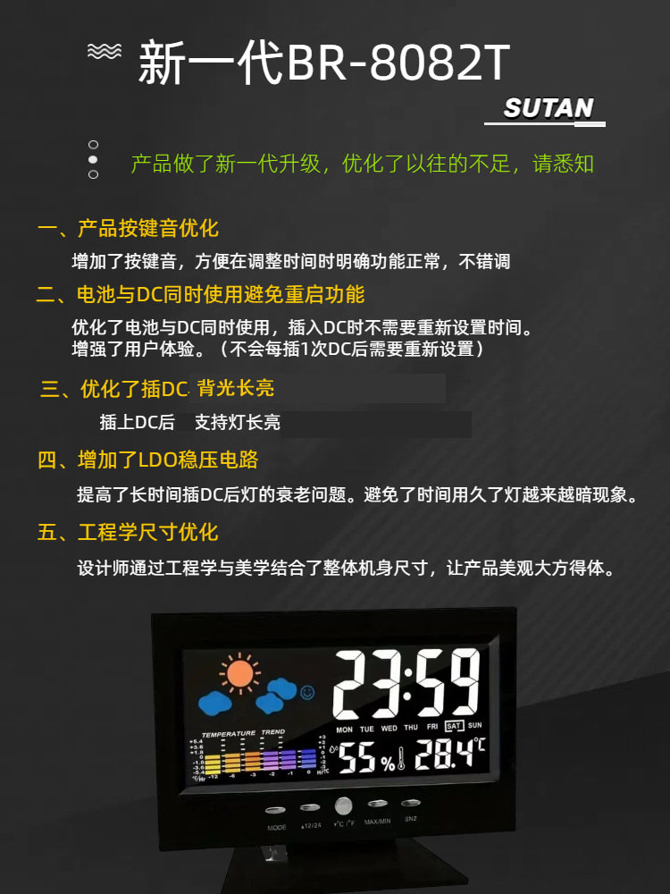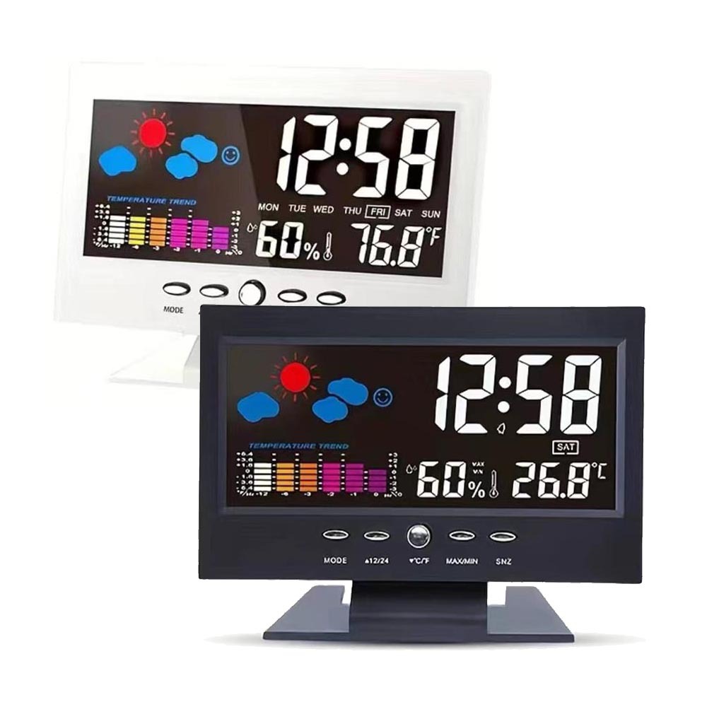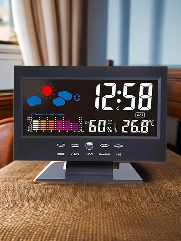 Многофункциональные трансграничные часы-термометр-гигрометр с голосовым управлением, светящиеся настольные часы для бизнеса 8082T-24