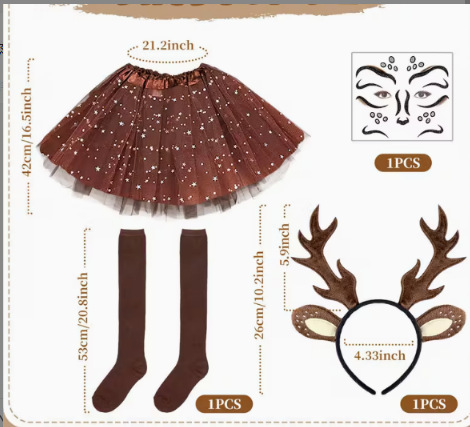 Набор из 7 предметов с оленями в горошек; Коричневый набор из четырех предметов с роговым узором; Черный обруч для волос, новый набор из трех предметов с рогами; Комплект жилета из четырех предметов; Костюм рогов; Новые рога для волос; Повязка на голову с пятнистыми рогами; Набор из двух повязок на голову с пятнистыми рогами; Комплект из трех предметов с повязкой на голову из пятнистого рога (юбка); Комплект из трех частей повязки на голову с пятнистыми рогами (нос); Мутация белых пятнистых рогов; Разноцветный пятнистый рог коричневого цвета; красные рога; Рога с леопардовым принтом; коричневые рога; Большая рождественская елка; рождественская елка с трубой; большие коричневые рога; длинные коричневые рога; Комплект из двух частей с большими рогами; ультразвуковое золото; ультразвуковой красный; ультразвуковой зеленый; красный бант; Красный бант и юбка; зеленые рога; красная шляпа; красная весна; Маленькие рога; Комплект из двух предметов с коричневыми рогами; Комплект из четырех предметов с коричневыми рогами; Коричневые уши, новые рога; зажим хвоста; хвост ремня; Кофейная 30cm детская юбка 6 слоев; Кофейная 30cm детская юбка 3 слоя; Детская юбка Кофе 40cm; Рождественская шапка; Наклейки 2; Наклейка 1; Набор из двух частей: бакенбардов и рогов.; длинные рога; широкие коричневые рога; Новый набор из трех предметов с коричневыми ушками; Комплект из двух частей ремня с бакенбардами и рогами; красная рождественская елка; красный лук, золотой рог; зеленая шляпа; Комплект из трех предметов с красной шляпой; сумка с яблоками 1; яблочный мешок 2; весенняя повязка на голову; Новые желтые уши рогов; жилет; Большой хвост; Черная повязка на голову с пятнистыми рогами; Комплект из двух предметов «Коричневый рог» — платье большого размера