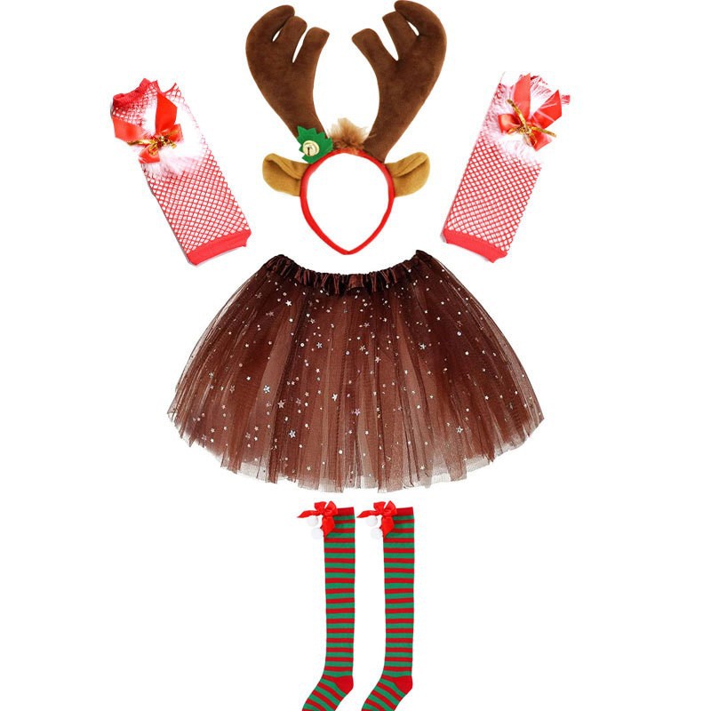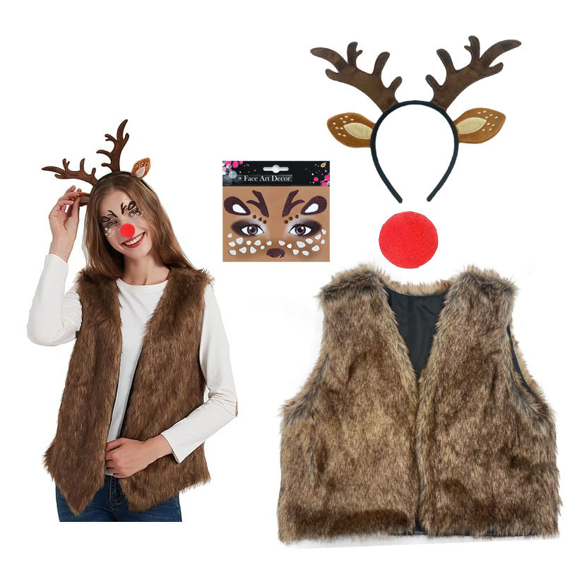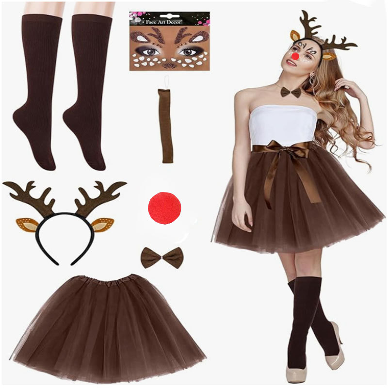 Рождественский женский костюм Ролевая игра Хэллоуин костюм рога