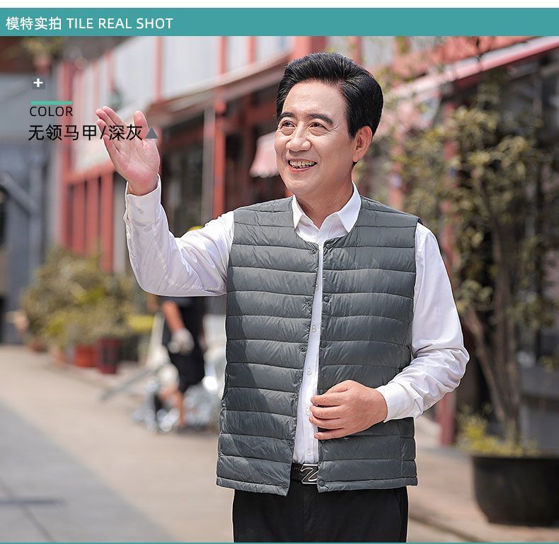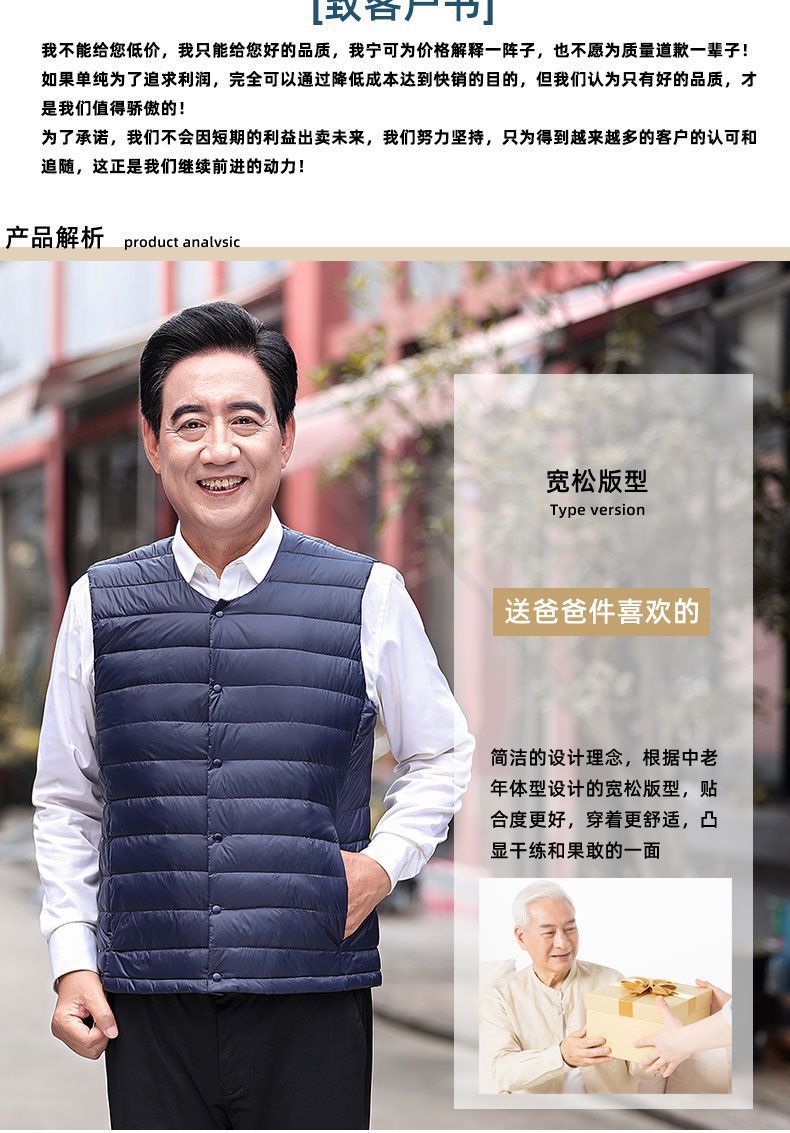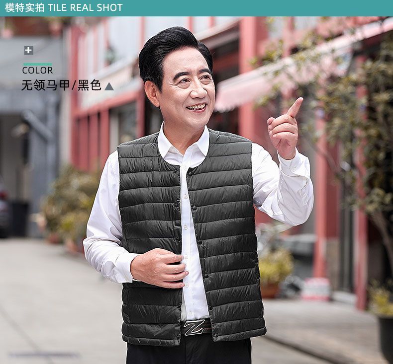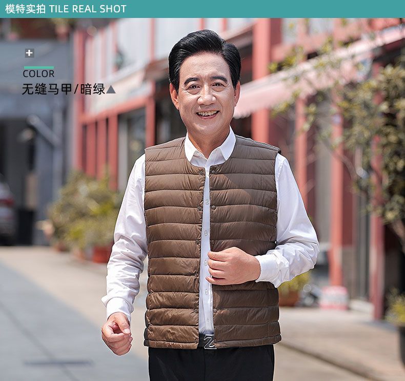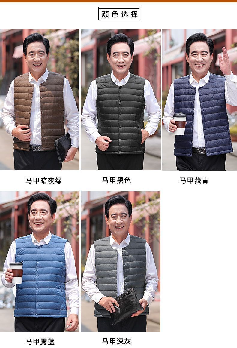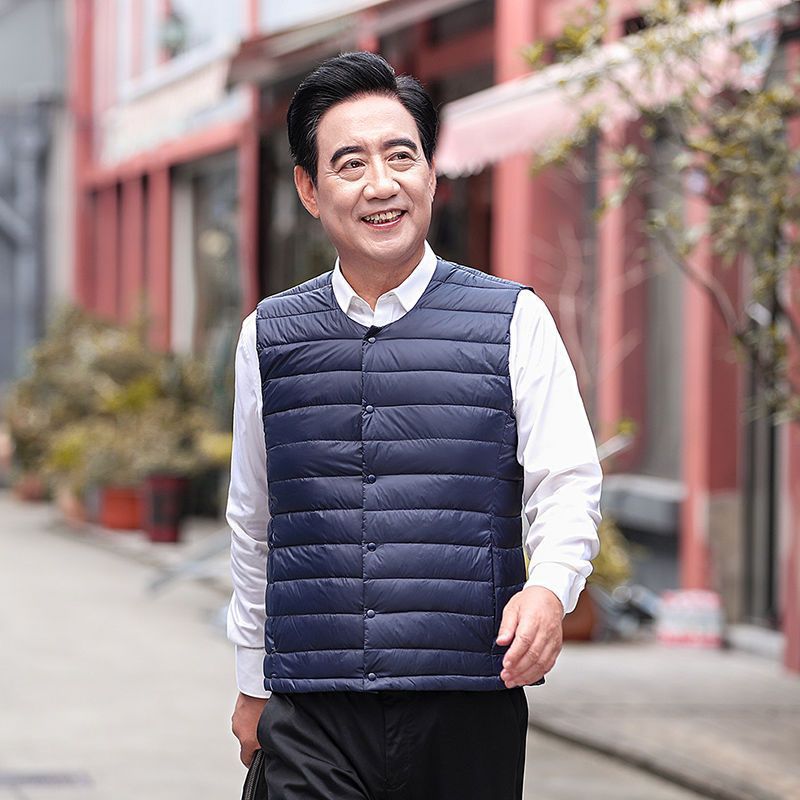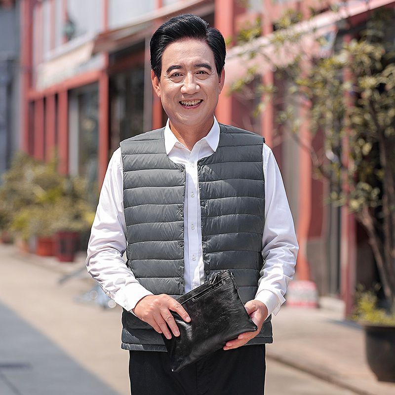 Осенне-зимний мужской пуховик для отца среднего и пожилого возраста, жилет для папы, жилет с круглым вырезом, подкладка на талию, легкая и теплая короткая верхняя одежда