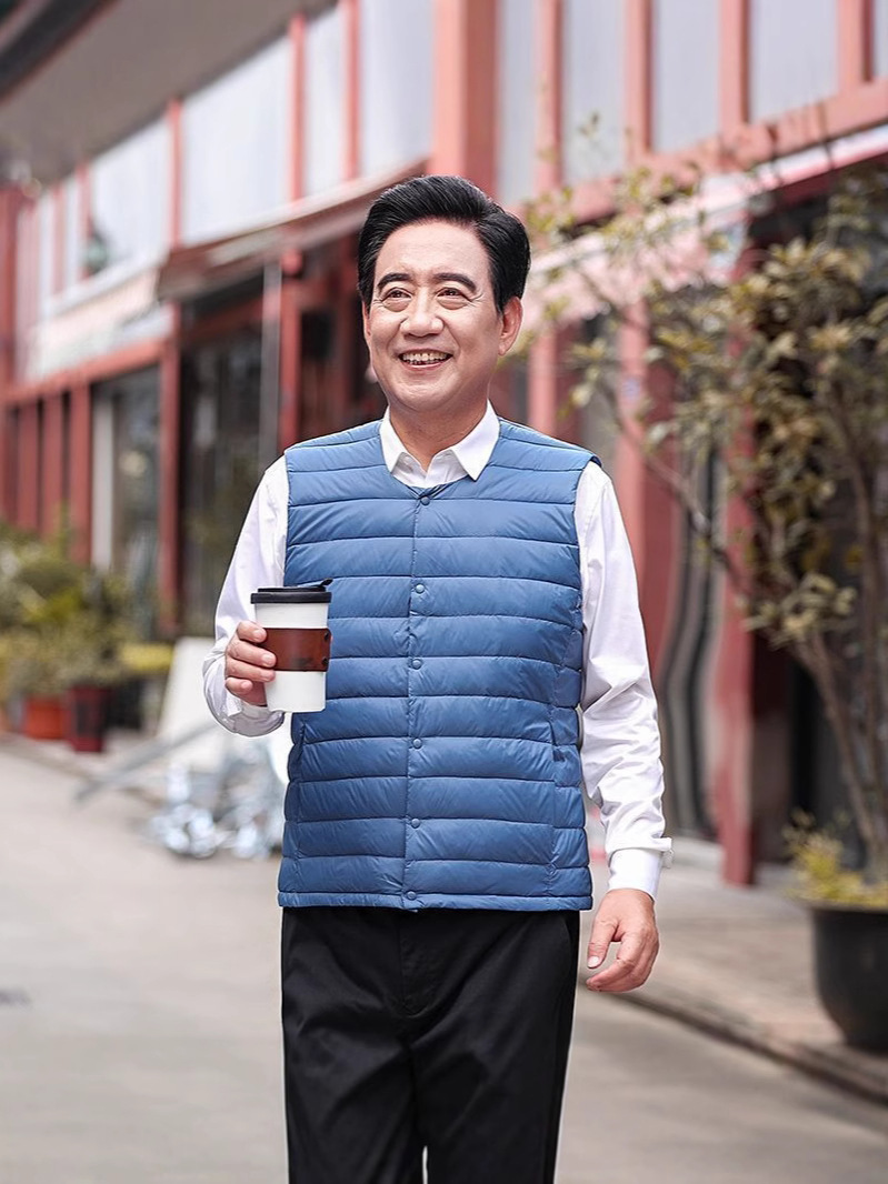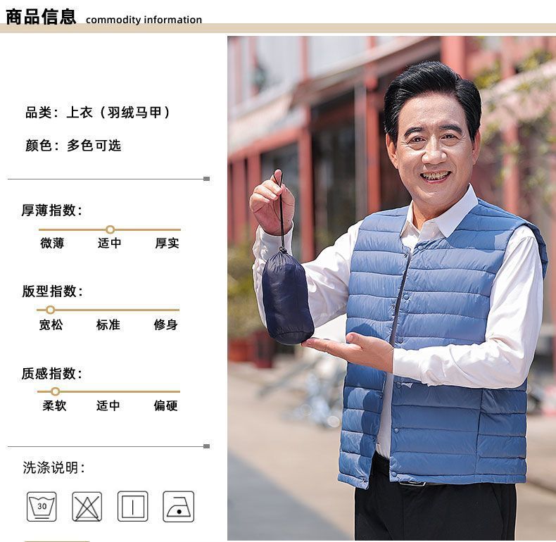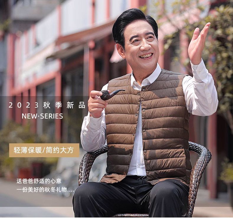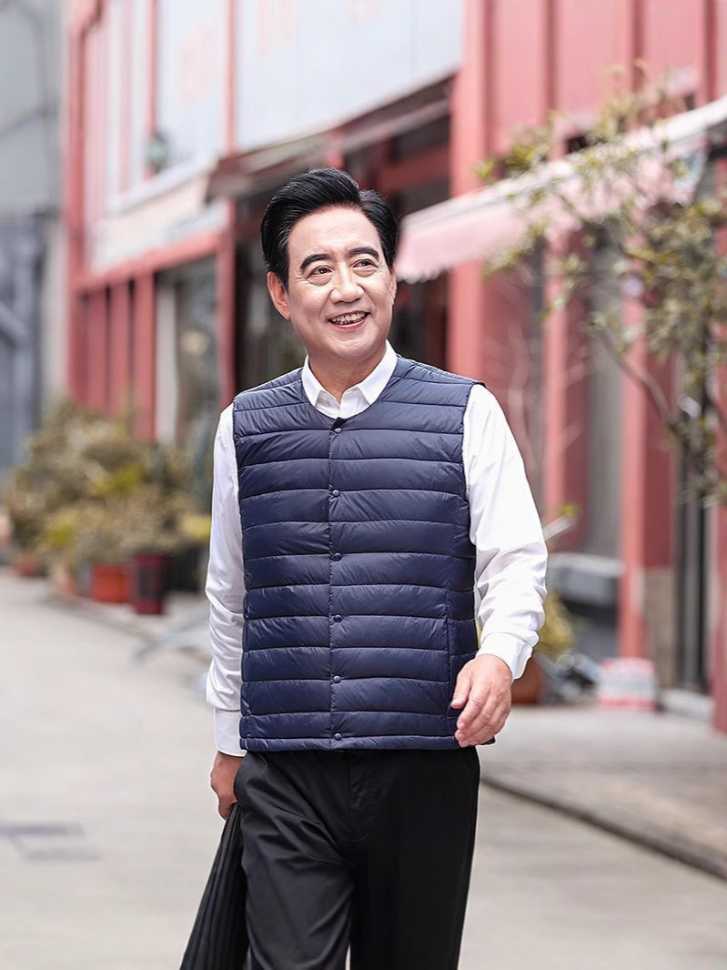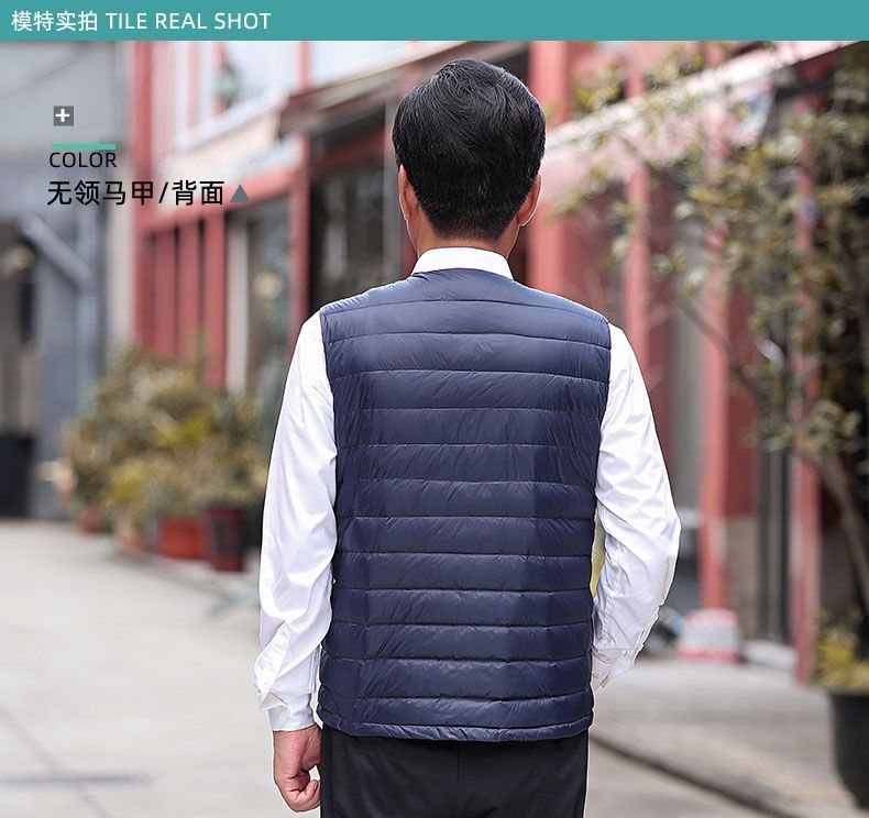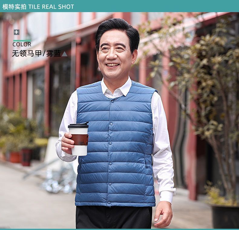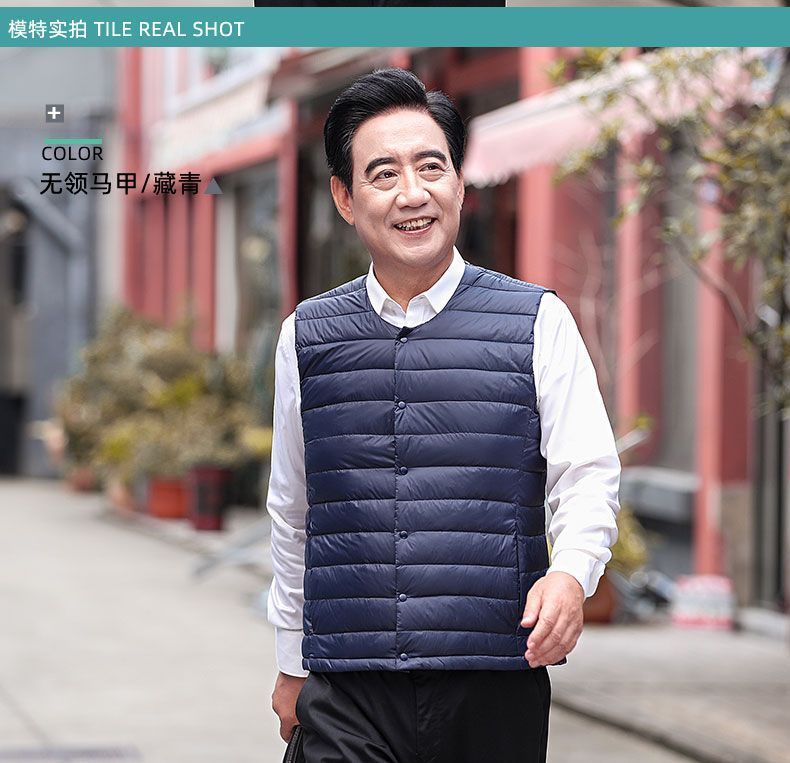 Осенне-зимний мужской пуховик для отца среднего и пожилого возраста, жилет для папы, жилет с круглым вырезом, подкладка на талию, легкая и теплая короткая верхняя одежда