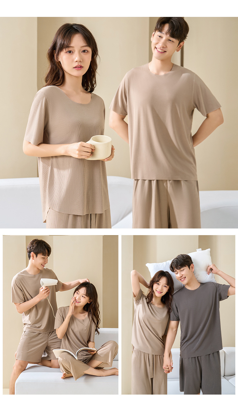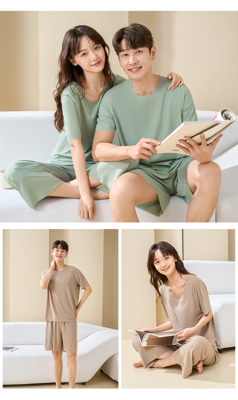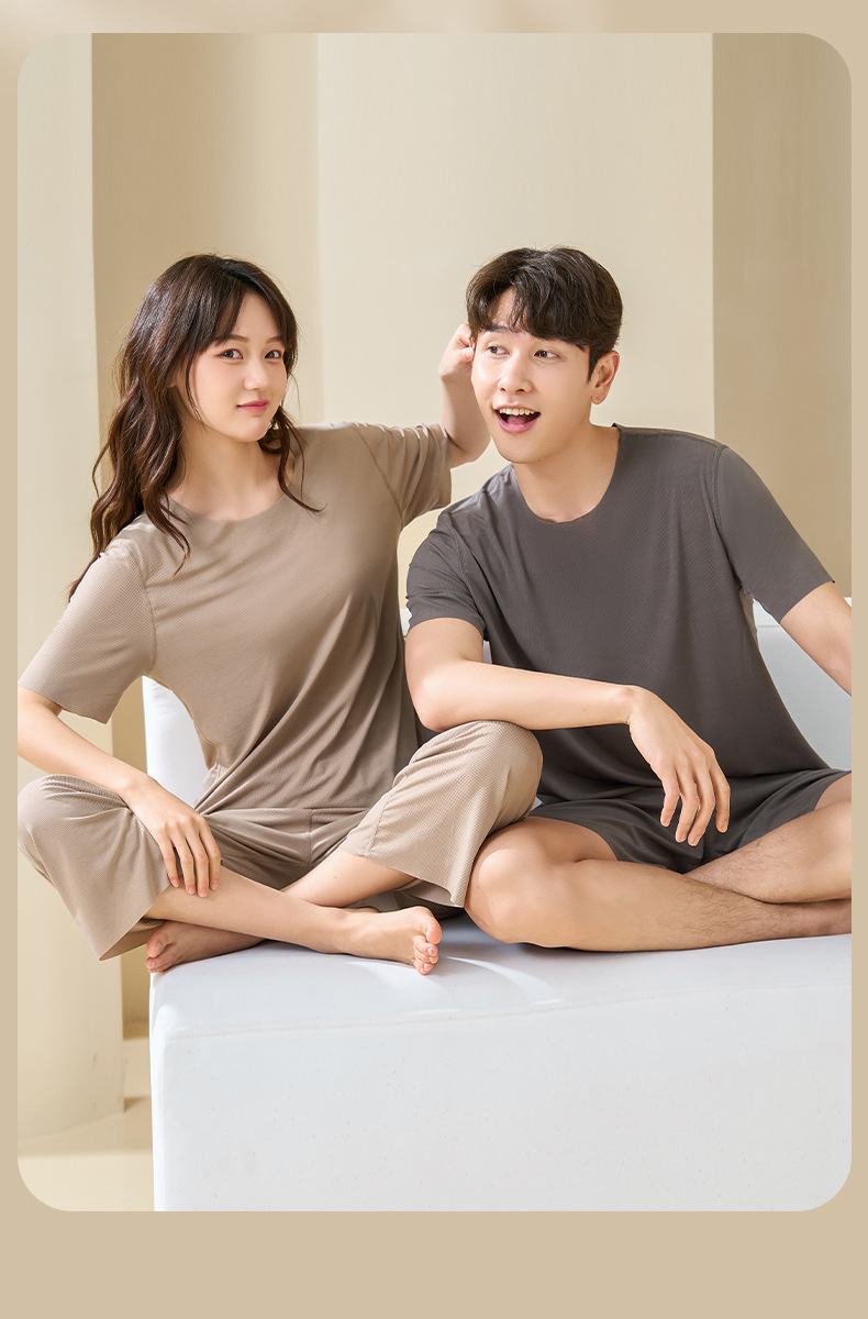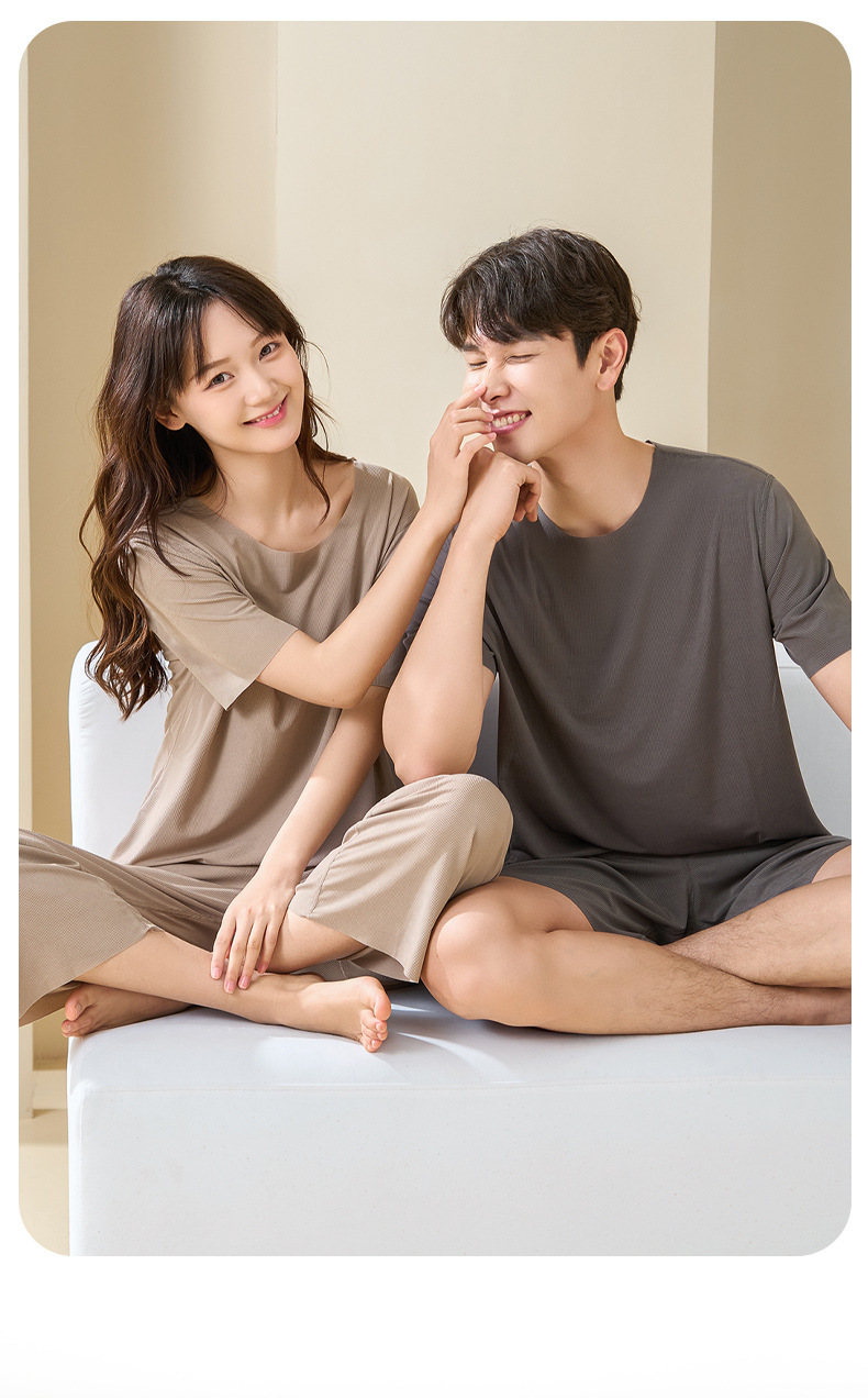Комплект домашней одежды для пар 2025: стильные мужские пижамы и женские летние тонкие шорты из ледяного шелка с коротким рукавом, можно носить на улице