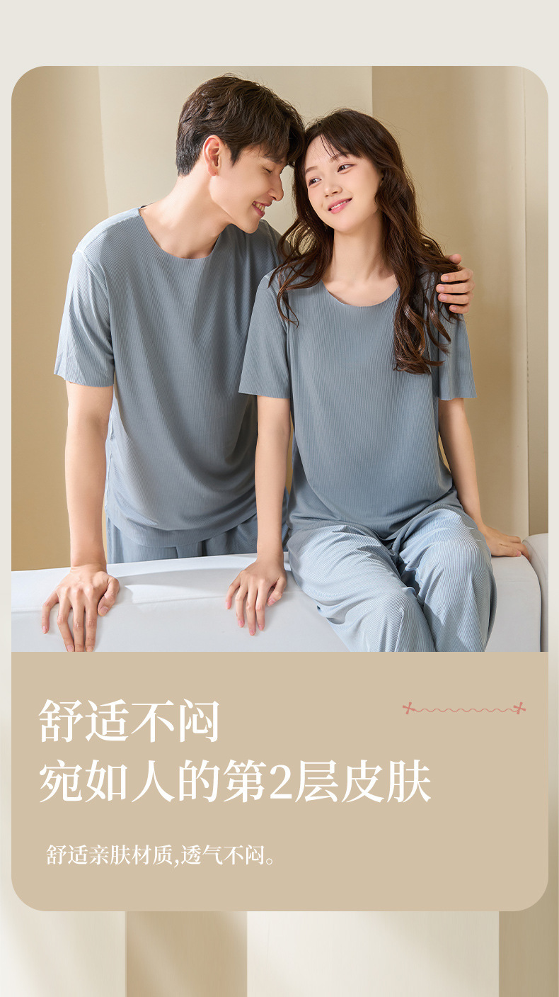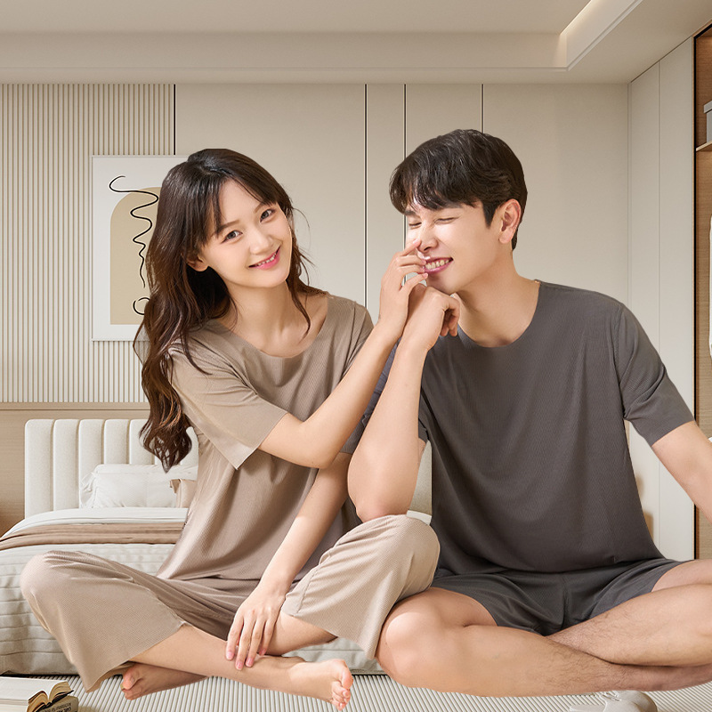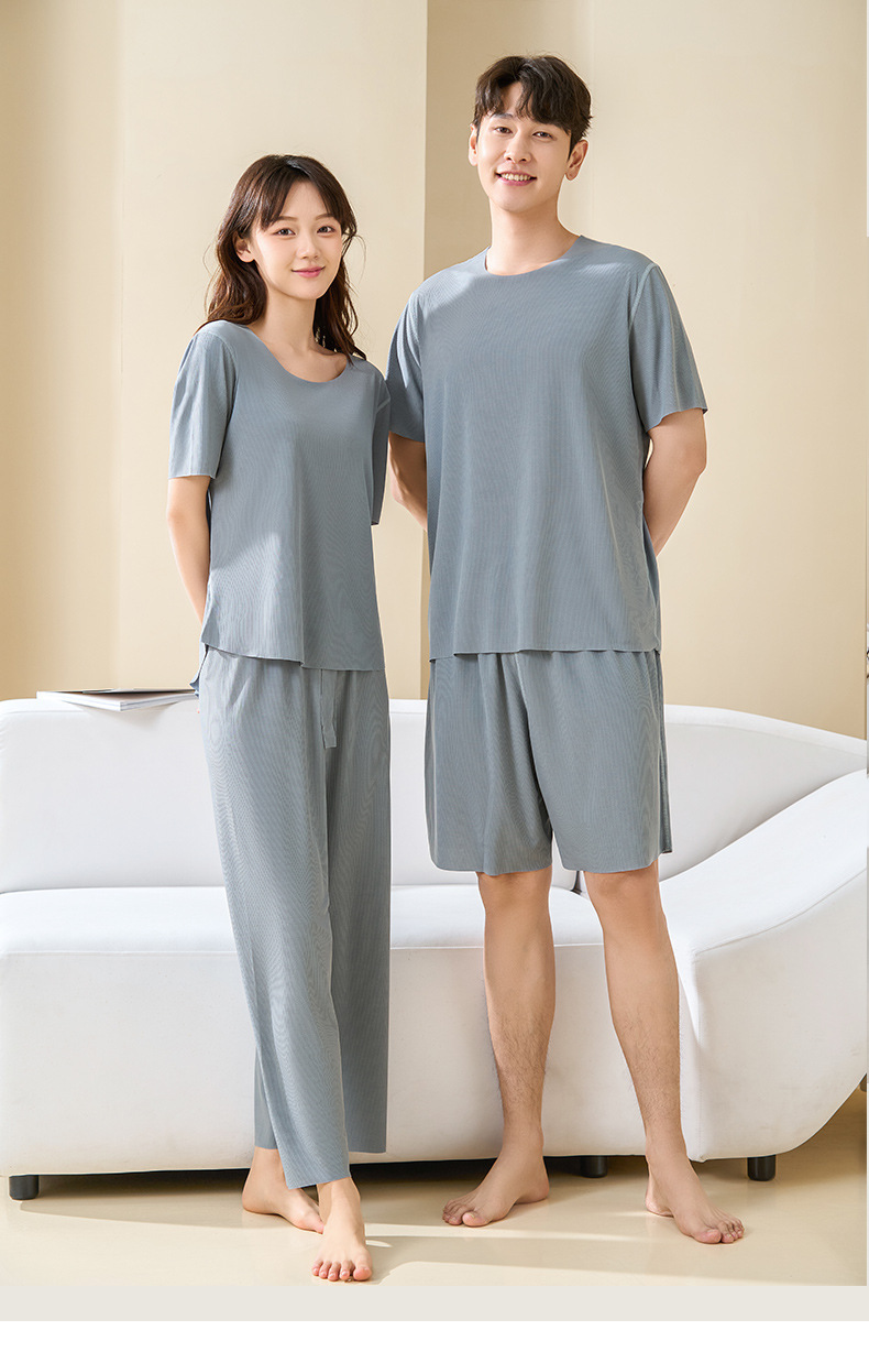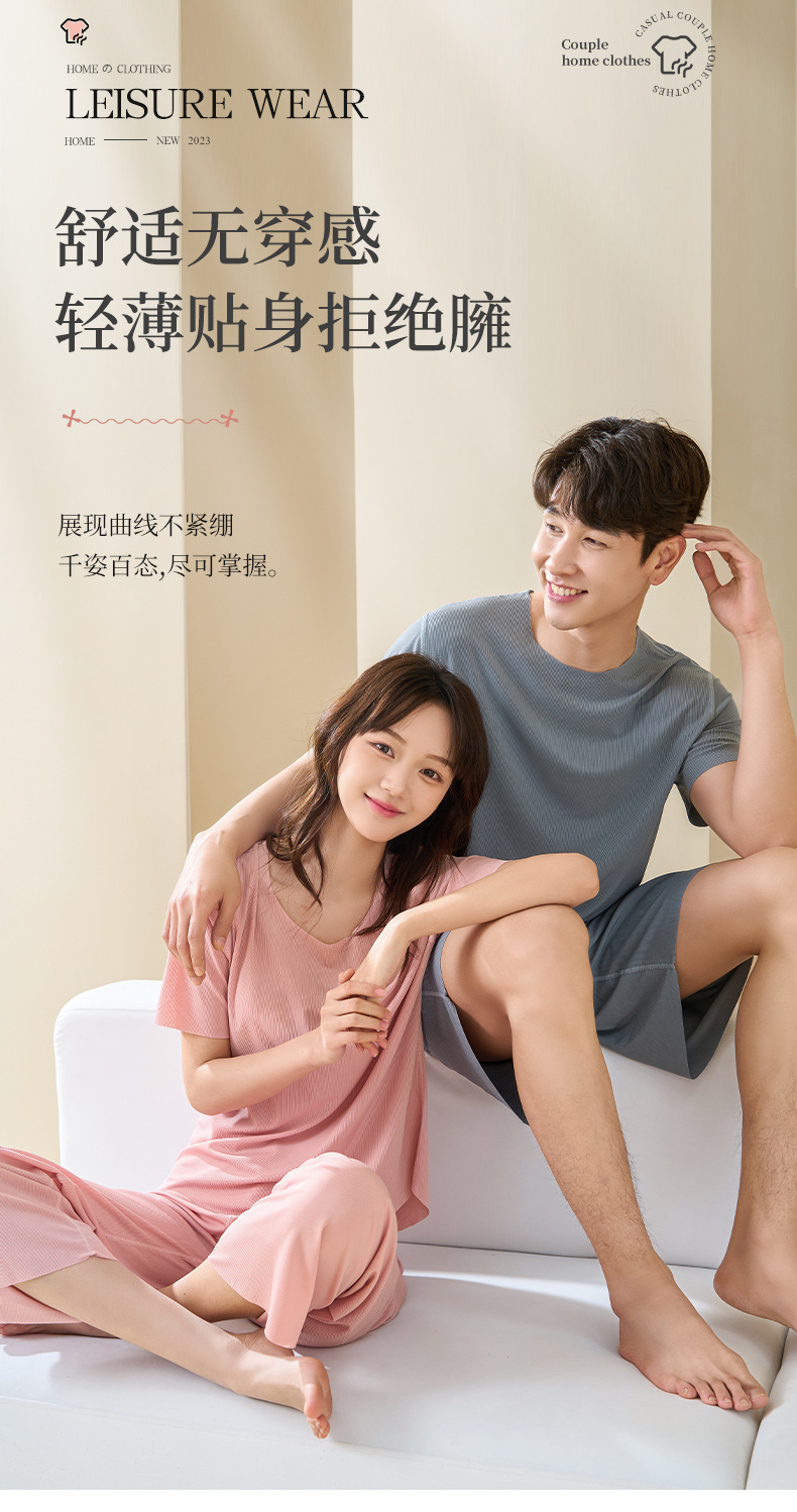 Комплект домашней одежды для пар 2025: стильные мужские пижамы и женские летние тонкие шорты из ледяного шелка с коротким рукавом, можно носить на улице