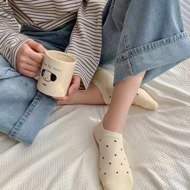 Новые весенние и летние новые 2024 корейские носки с небольшими точками, дышащие короткие носки, свежие повседневные женские носки