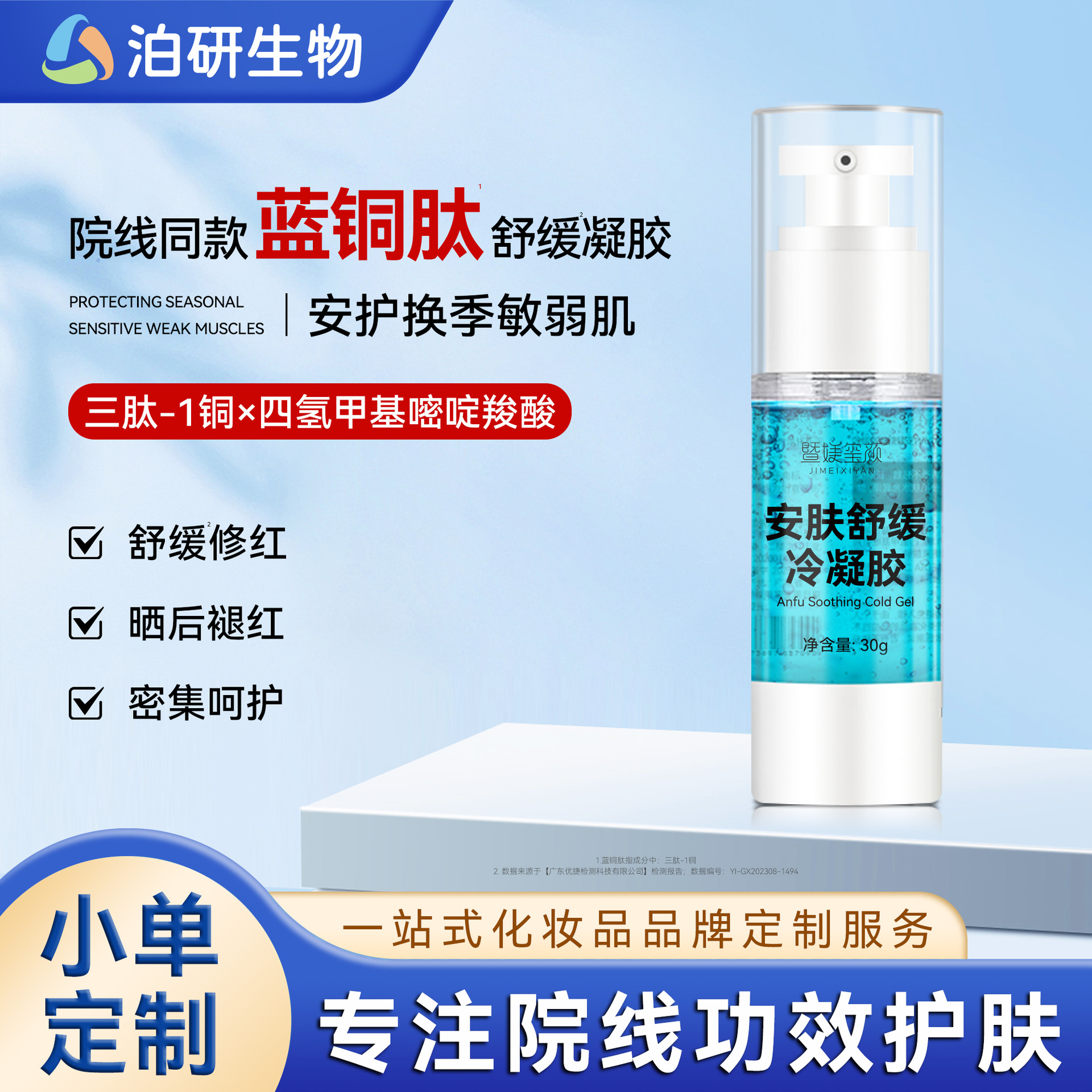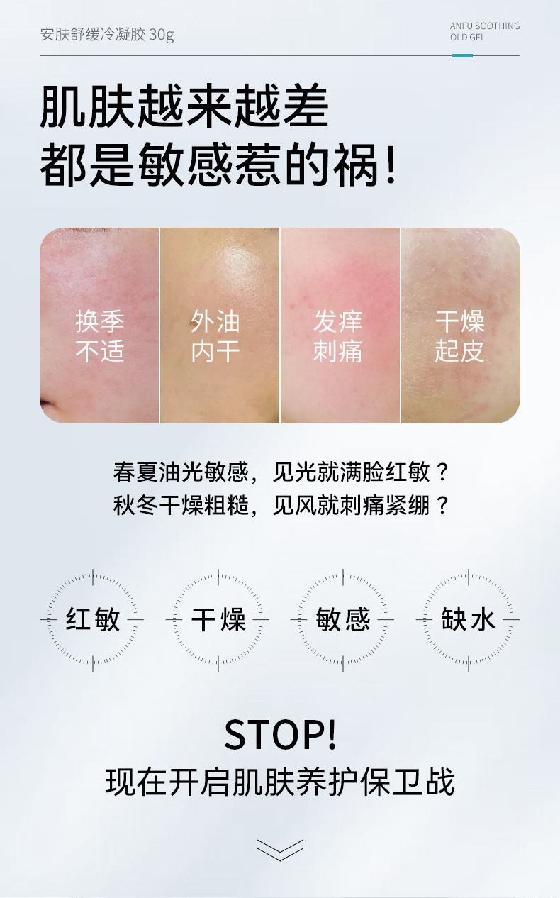 Холодный гель-пептид с синим медным пептидом, стабилизирует кожу, хрупкую кожу, восстанавливает покраснение после exposure солнца, забощает для чувствительной кожи и успокаивает гель-ремонт.