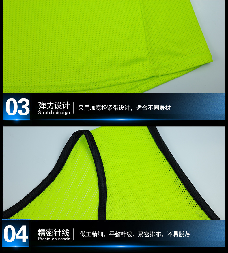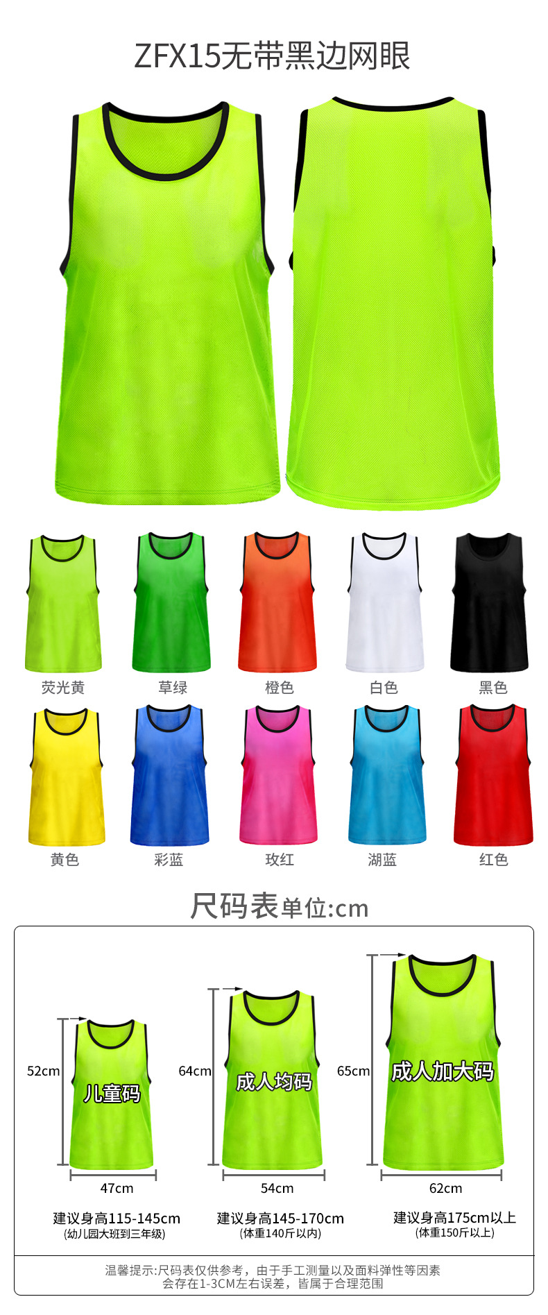 Флуоресцентный зеленый жилетка с черным краем сетки; Белая сетка жилет с черным краем; Оранжевый жилет с черной сеткой; Черная сетка жилет с черным краем; Желтая сетка жилет с черной краей; Небесно-голубой жилетка с черной сеткой; Розовая красная сетка жилет; Темно-синий жилетка с черным краем; Жилет с красной сеткой с черным краем; Травяной зеленый сетчатый жилет; Фиолетовый жилетка с черной сеткой
