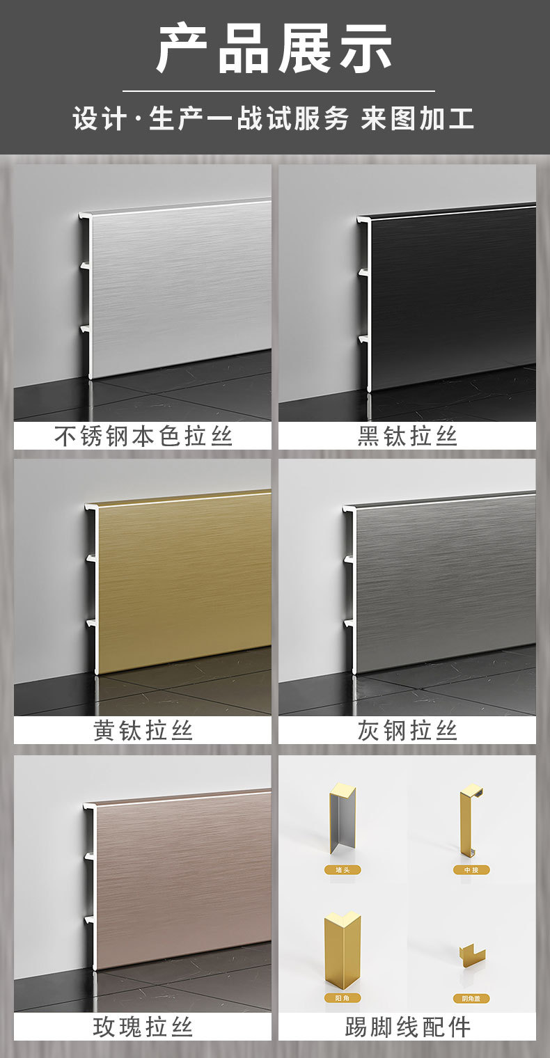 Производитель оптовая продажа плинтуса из нержавеющей стали без базовой установки 201 застежка металлическая матовая зеркальная поверхность 304 линия для ног