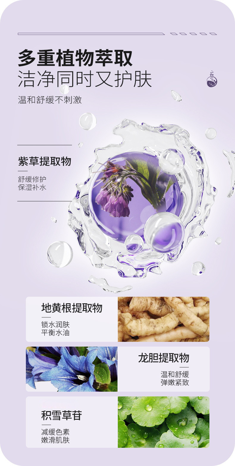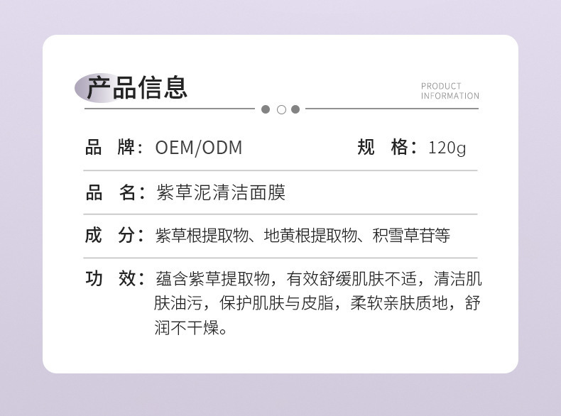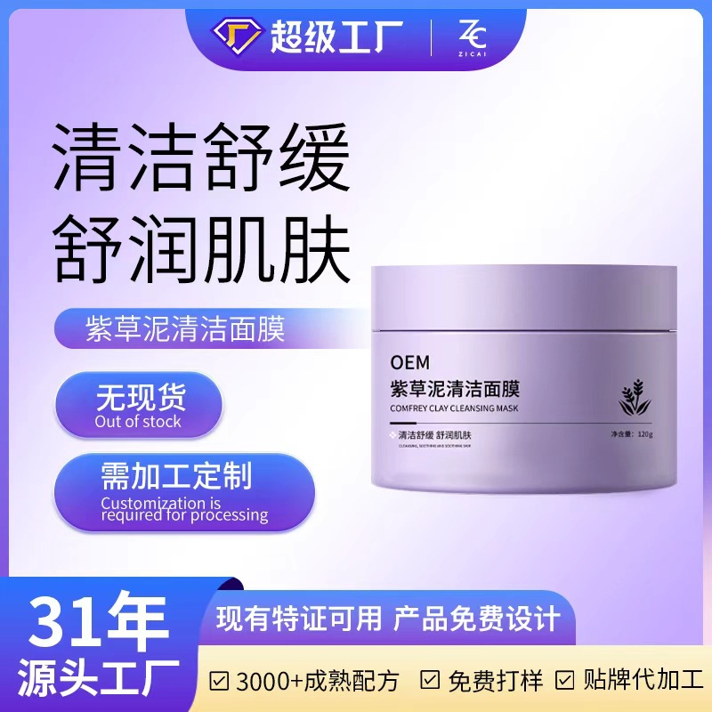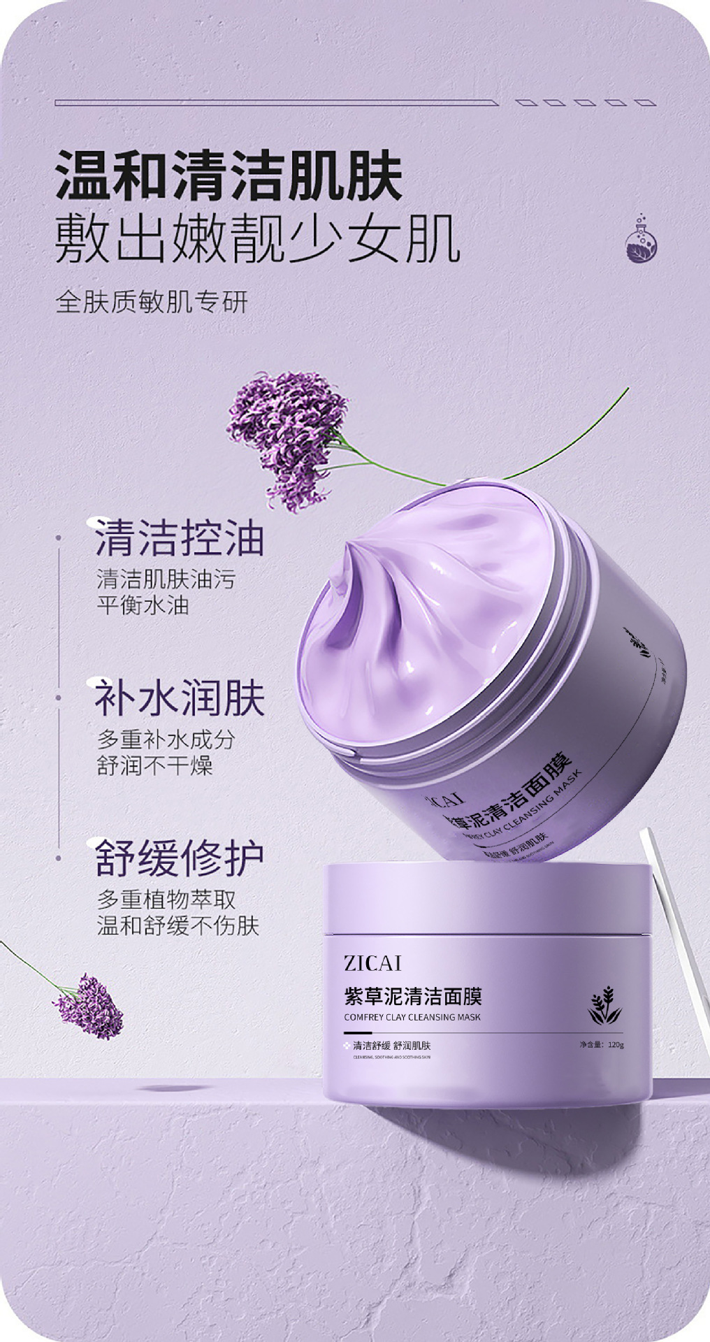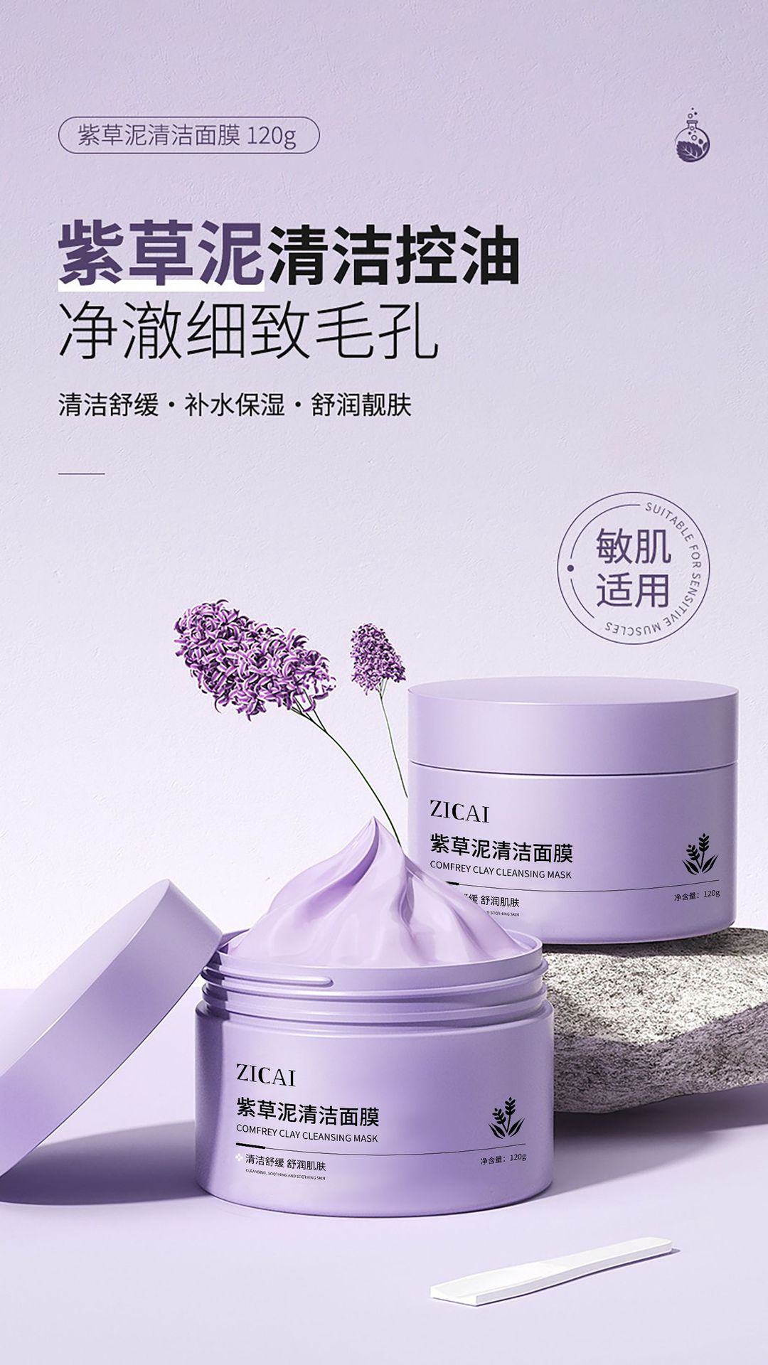 Очищающая маска из листоцерпеля, маленькая фиолетовая, очищает поры и успокаивает чувствительную кожу. Производство под собственной маркой (OEM).