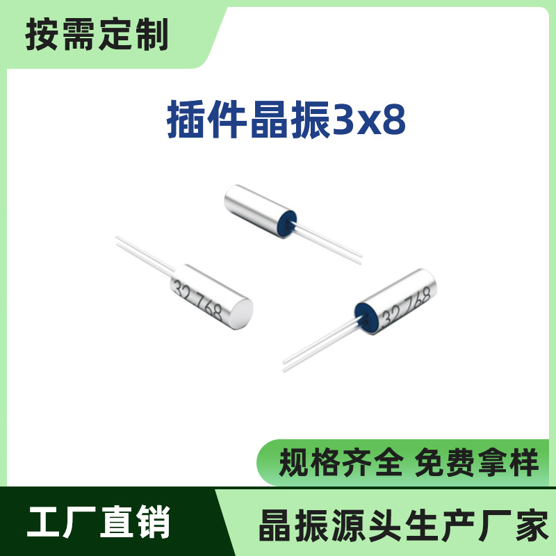 3x8 кварцевый цилиндрический подключаемый пассивный кварцевый генератор, кварцевый резонатор 32,768 кГц, заводской точечный генератор часов по индивидуальному заказу