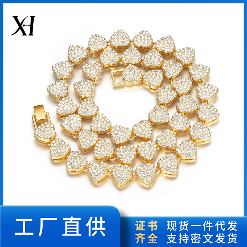 Трансграничный новый классический 13 мм кубинский цепочечный сплав полный бриллиант европейский и американский хип-хоп позолоченное ожерелье мужской женский браслет