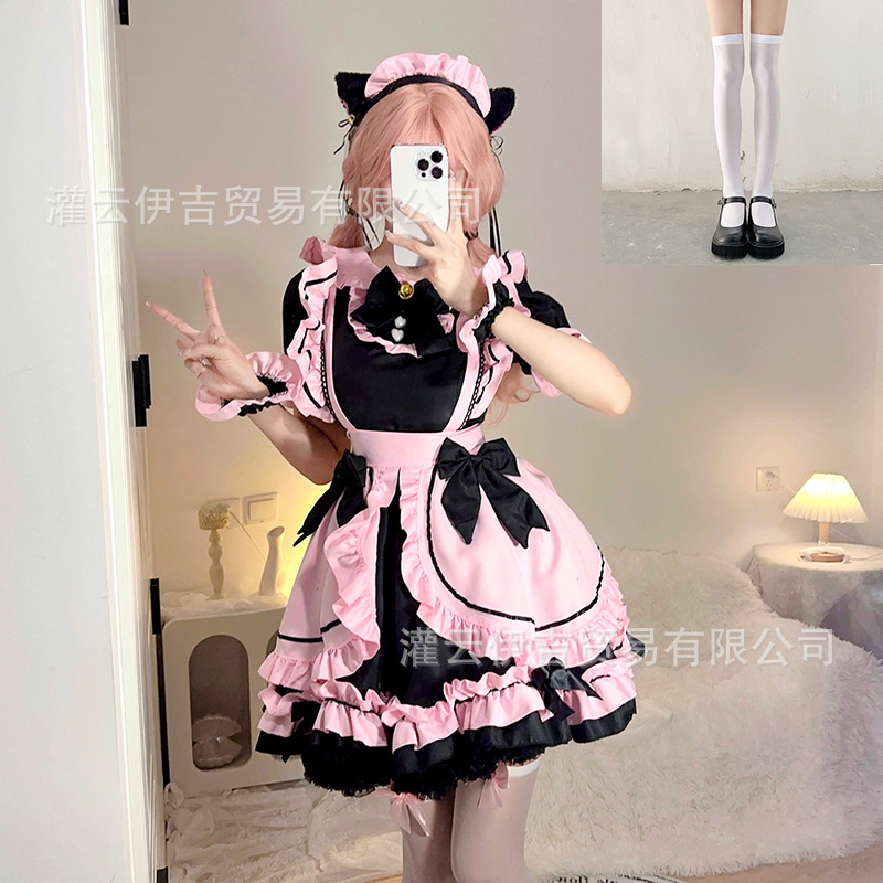 Черный розовый костюм для горничной; Черный порошок горничная одежда костюм белые носки; Черный розовый костюм горничной одежды черный чулок; Черный порошок горничная одежда костюм юбка; Черный порошок горничная одежда костюм белые носки; Черный порошок горничная одежда костюм черный чулок