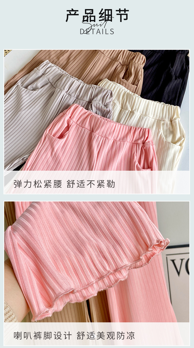Расклешенные брюки дикие детские летние повседневные брюки тонкие ледяные шелковые брюки принцессы ветер деревянные ушные брюки широкие брюки
