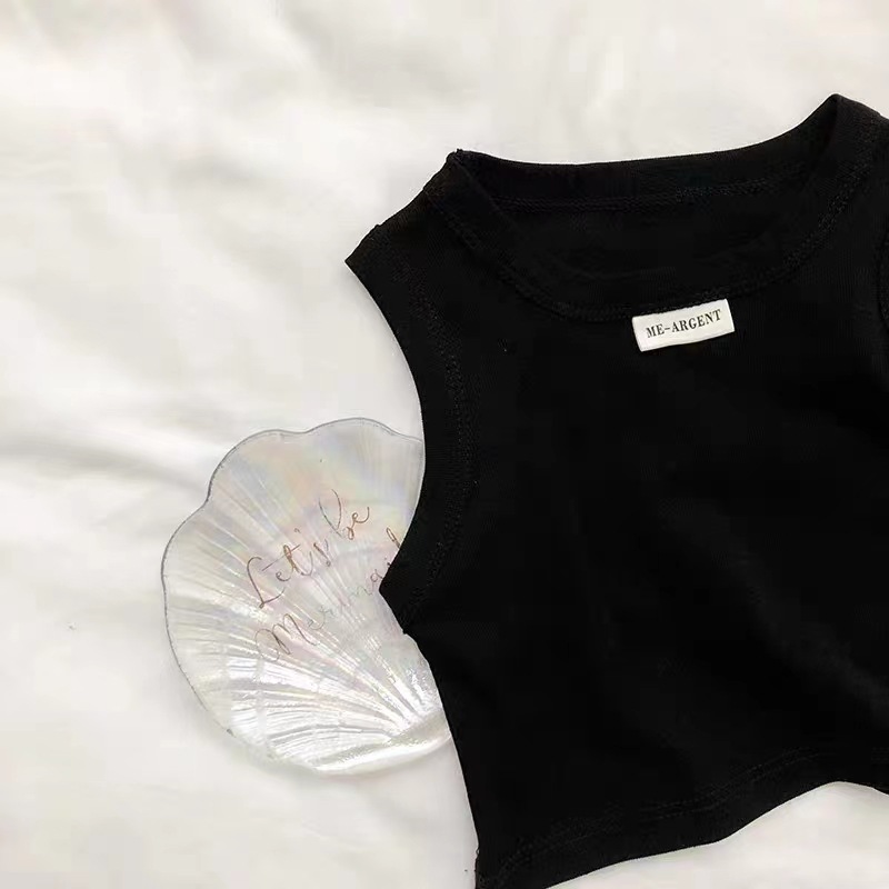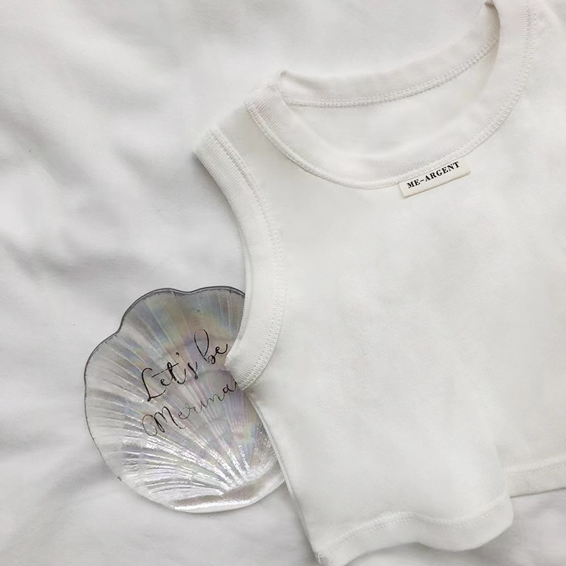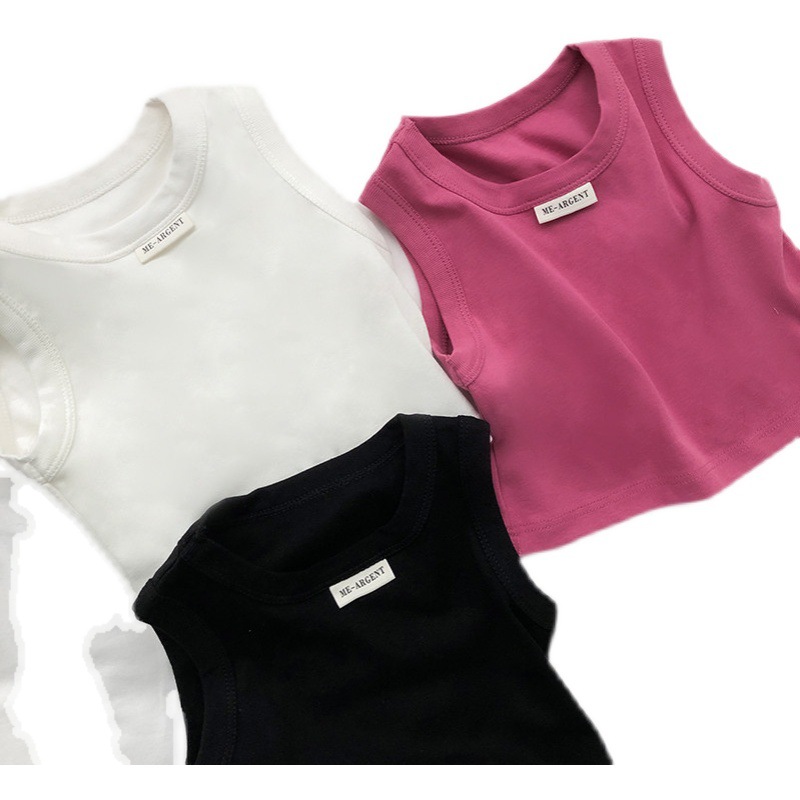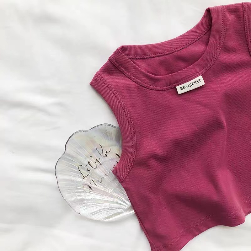 Жилет для девочек 2024 летний новый стиль рубашка с круглым вырезом