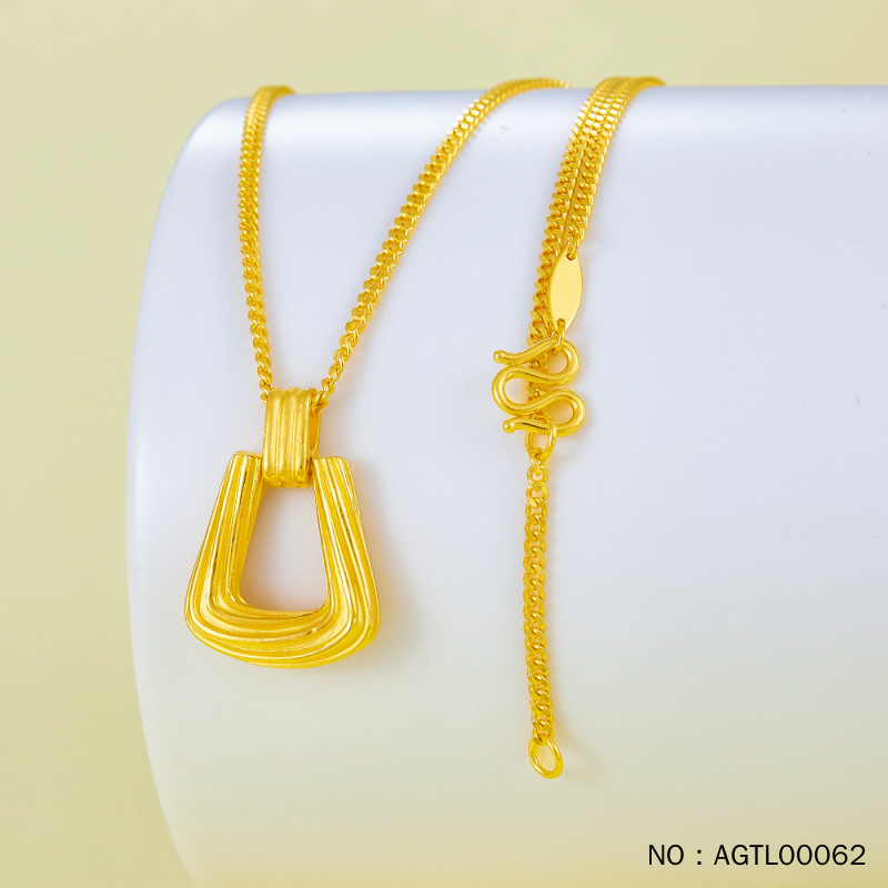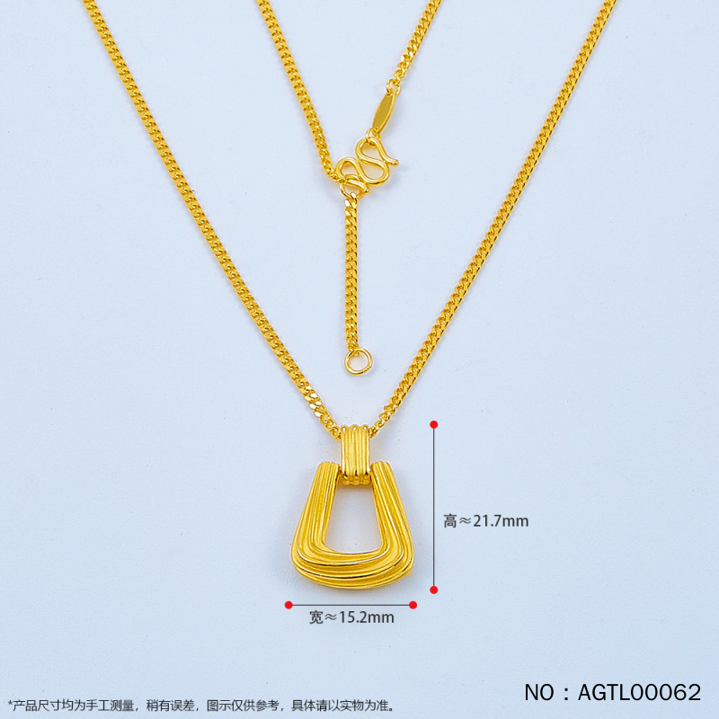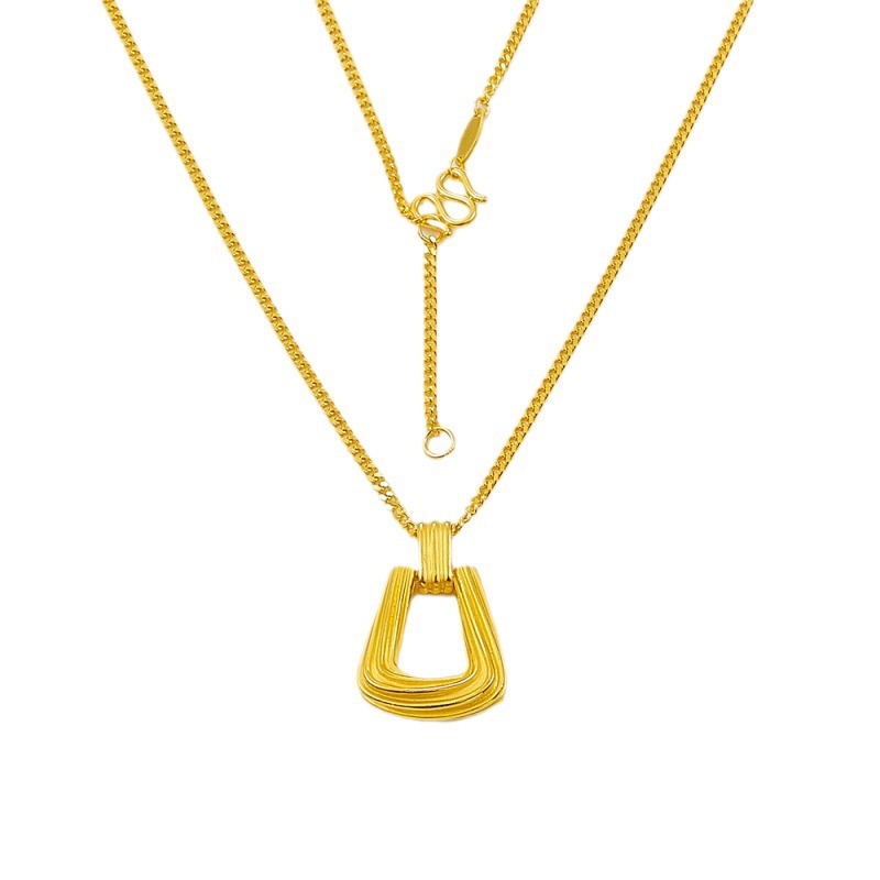 [Высокоточный дизайнер] Текстурированное геометрическое квадратное кольцо 17-18inch Регулируемая цепочка Золото Чистое золото 999