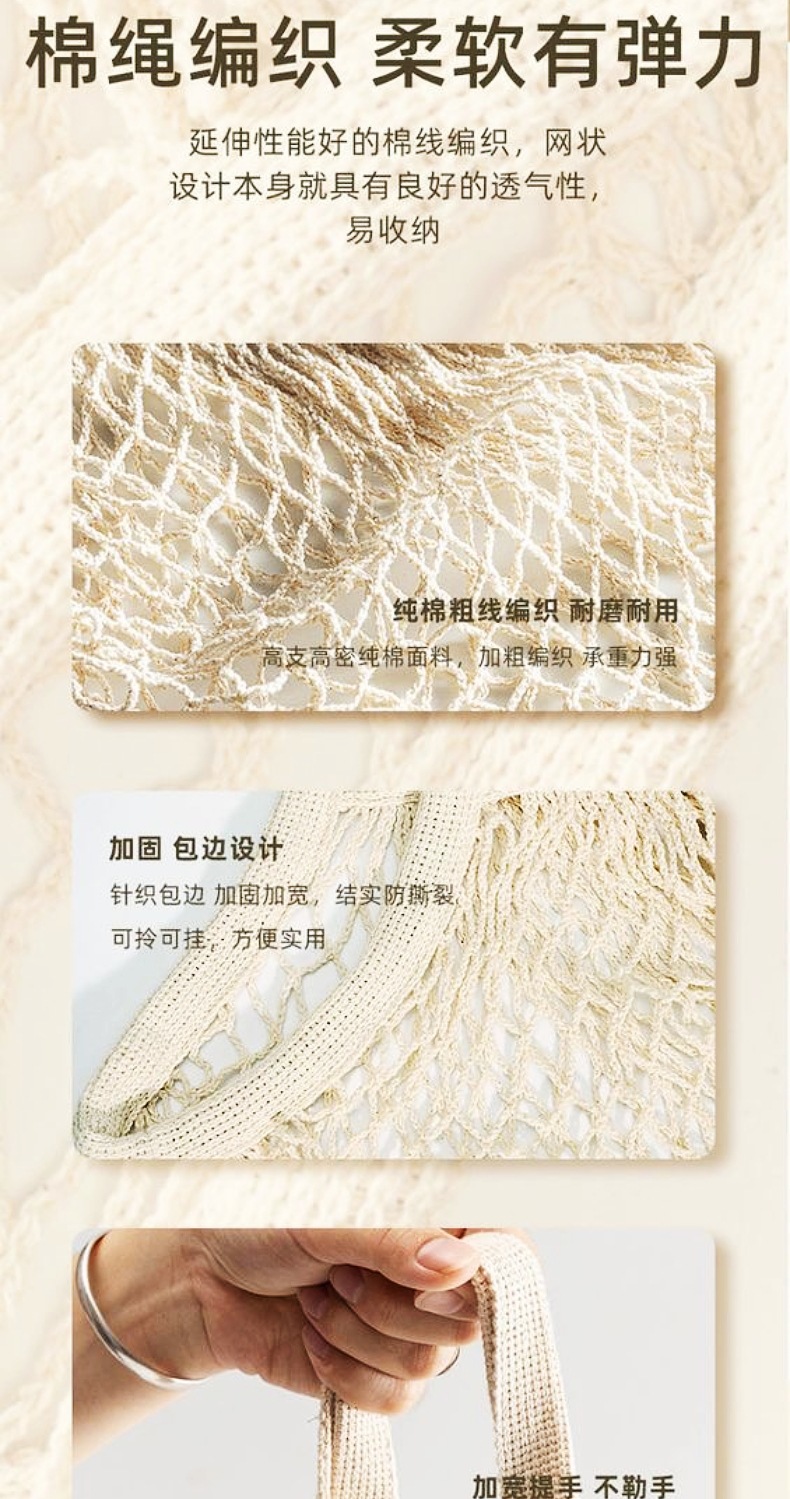 Amazon Spot сумка из чистого хлопка для овощей и фруктов, пляжная тканая сетчатая сумка, портативная сумка для покупок в супермаркете, оптовая продажа