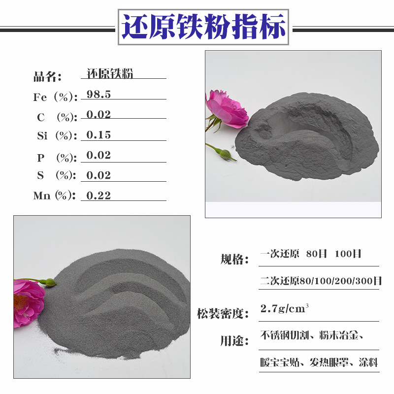 70% чугунный порошок; Первичный редукционный железный порошок 100 меш.; Первичный редукционный железный порошок 200 меш; Вторичный уменьшенный порошок железа 100 меш.; Вторичный уменьшенный железный порошок 200 меш; Вторичный уменьшенный порошок железа 300 меш; Специальный железный порошок для нержавеющей стали.; Железный песок 16-60 меш.