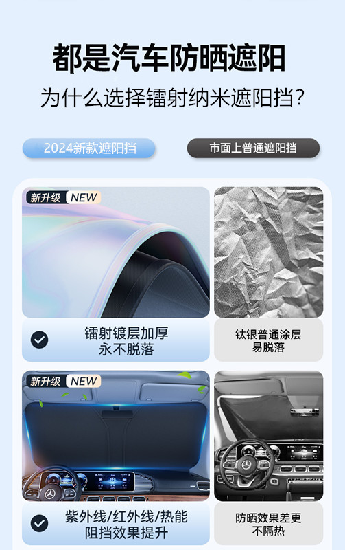 强烈的阳光从侧窗直射进来,不仅刺眼,影响驾车,难以忍受,高温还会损坏到车内的真皮内饰,本遮阳挡,有效隔热及高温照射,方便使用!