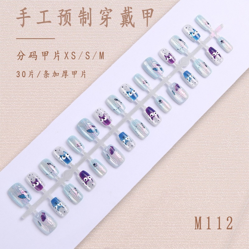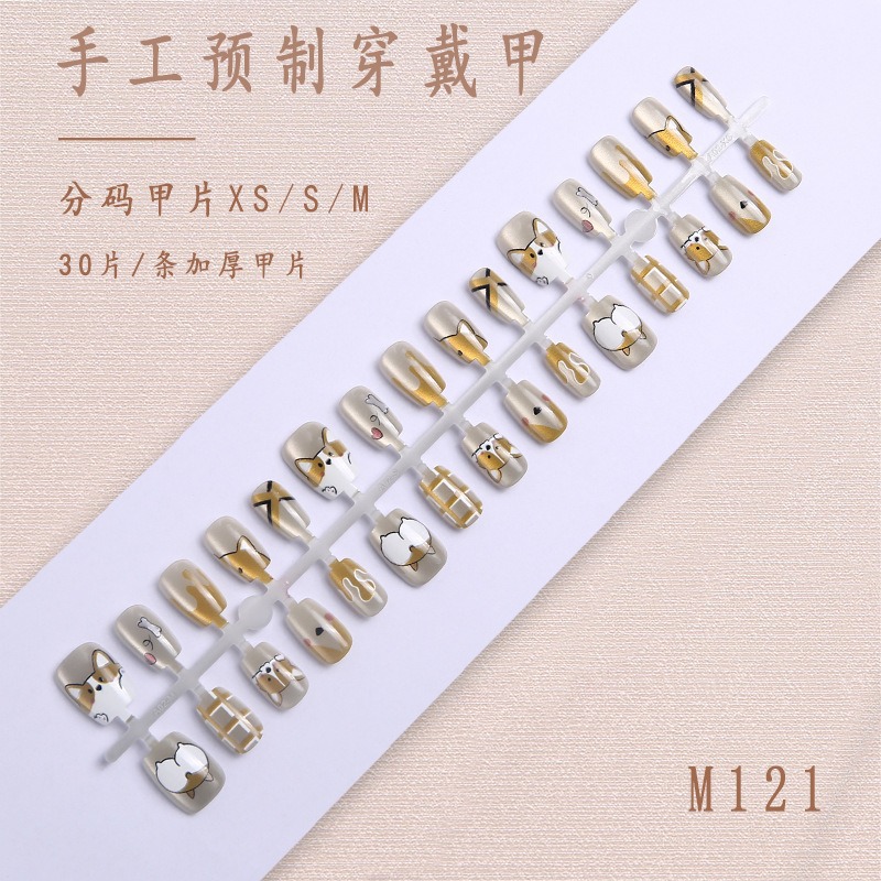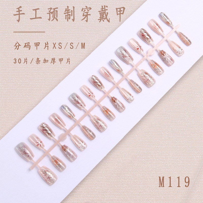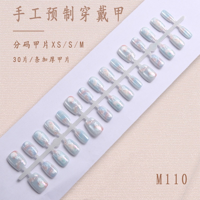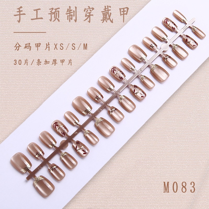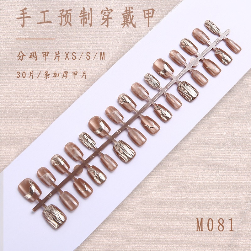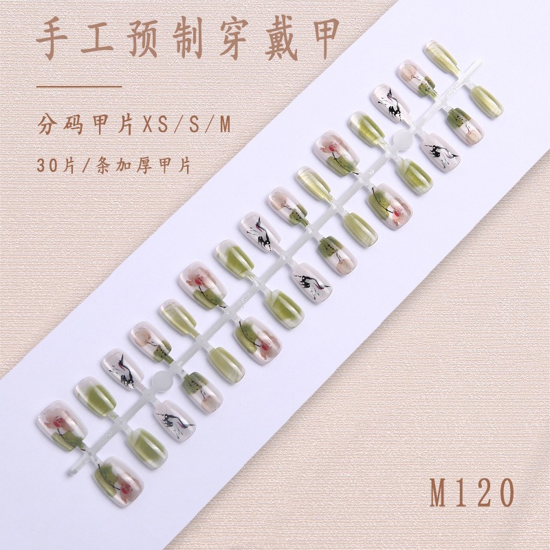 Короткие накладные ногти «кошачий глаз», ручная работа, в индивидуальной упаковке, 30 штук, китайский стиль, накладные ногти для маникюра, оптом.